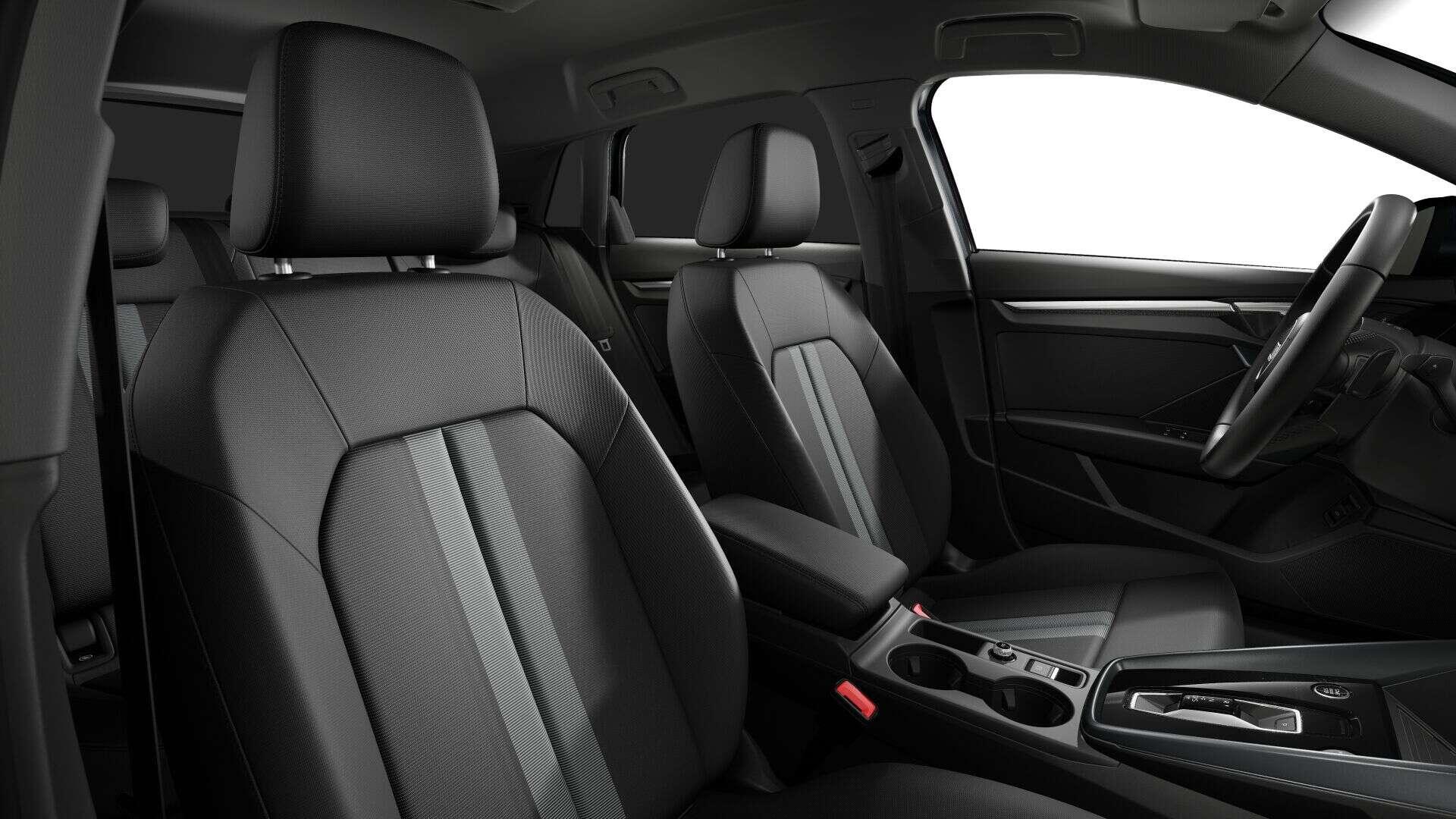 • Interieur: 4-Wege-Lendenwirbelstütze für die Vordersitze, Ambiente-Lichtpaket, Audi virtual cockpit plus, Dachhimmel Stoff, Farbe spezifisch, Dekoreinlage Feinlack vulkangrau, Einstiegsleisten mit Aluminiumeinlegern vorn, Fußmatten vorn und hinten, Innenspiegel automatisch abblendend, rahmenlos, Interieurapplikationen Aluminiumoptik, Lederlenkrad 3-Speichen mit Multifunktion plus und Schaltwippen, Mittelarmlehne vorn, Rücksitzlehne umklappbar, Sitzbezug / Polsterung: Stoff Konsens, Sitze vorn manuell einstellbar, USB-Anschlüsse mit Ladefunktion im Fond