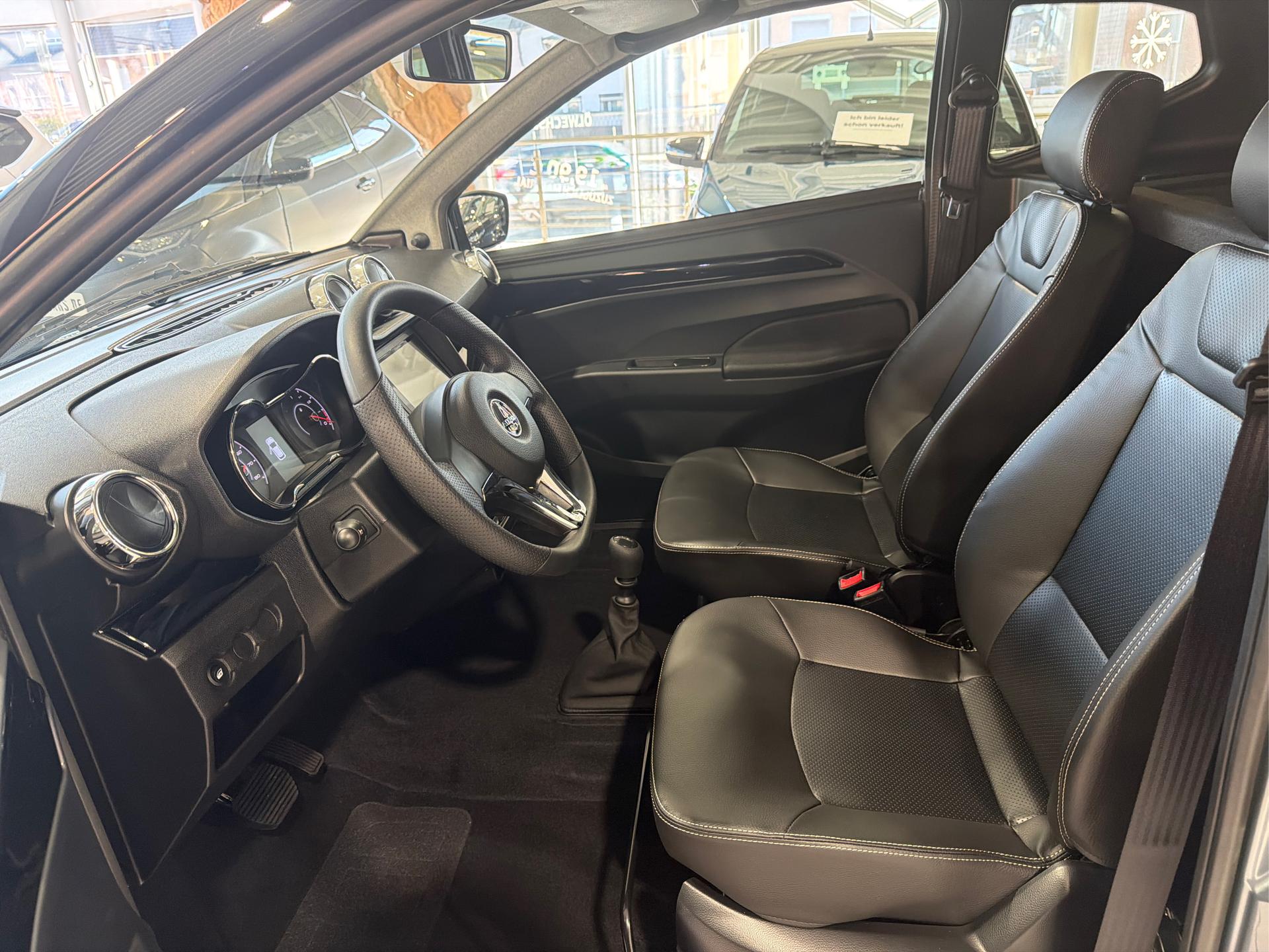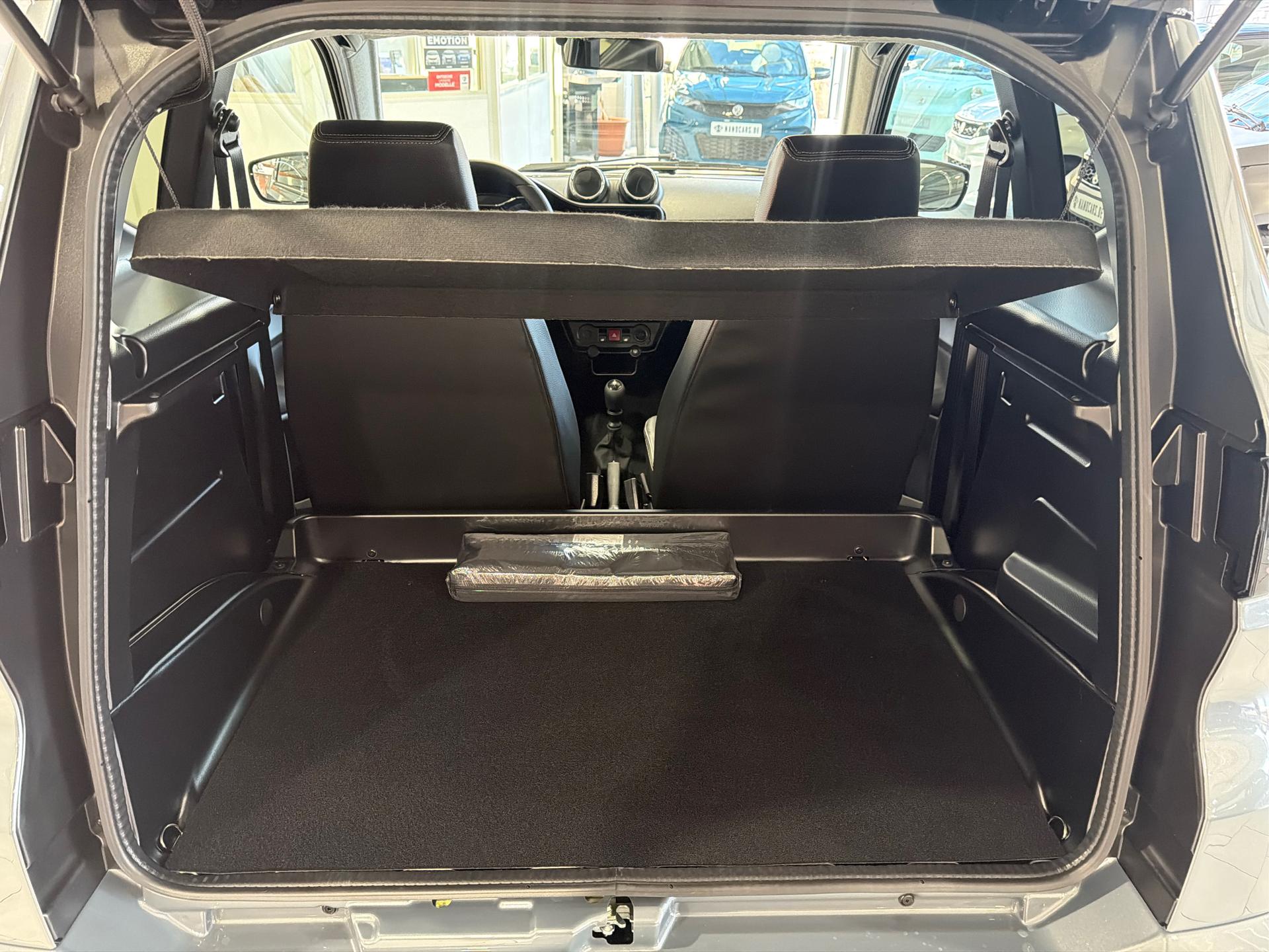 Ablagefach in Türen und Armaturenbrett auf der Fahrerseite, Dachhimmel in Stoff, Gepäckraumabdeckung und Gepäckstopp, Haltegriff Fahrer- und Beifahrerseite, Handschuhfach mit Münz- und Getränkehalter, Innenbeleuchtung LED mit Zeitverzögerung, Kofferraummatte in Stoff, Kopfstützen in Höhe einstellbar, Luftausströmer einstell- und regulierbar, mittig, Luftausströmer einstell- und regulierbar, rechts und links, Mobiltelefonablagefach, Rückspiegel mit Abblendfunktion, Schalldämmung Motorraum Stufe 2, Sicherheitsgurte Automatik, Sitz Beifahrer Rückenlehne einstellbar, Sitz Fahrer in Längsrichtung und Rückenlehne einstellbar, Sitze in Kunstleder schwarz, Sitzgestell Verkleidung seitlich, Sonnenblende mit Schminkspiegel