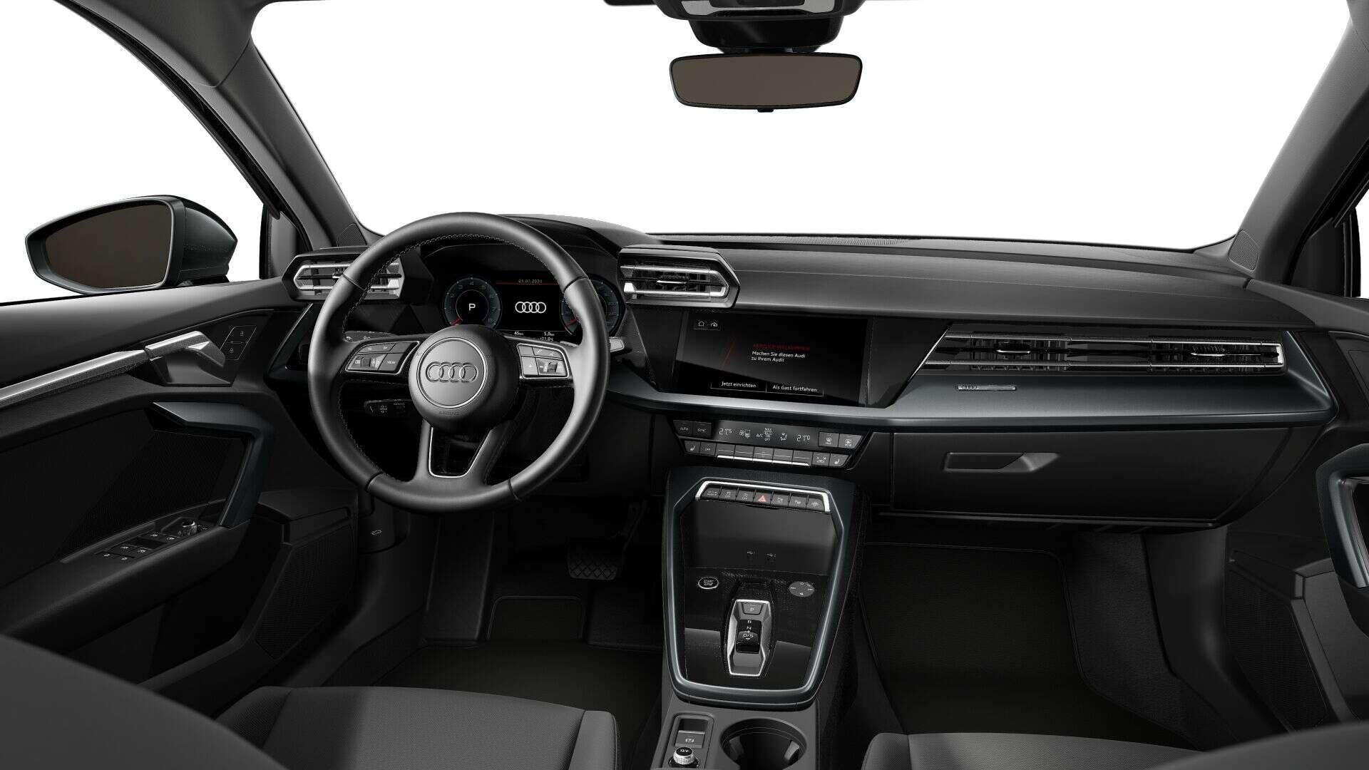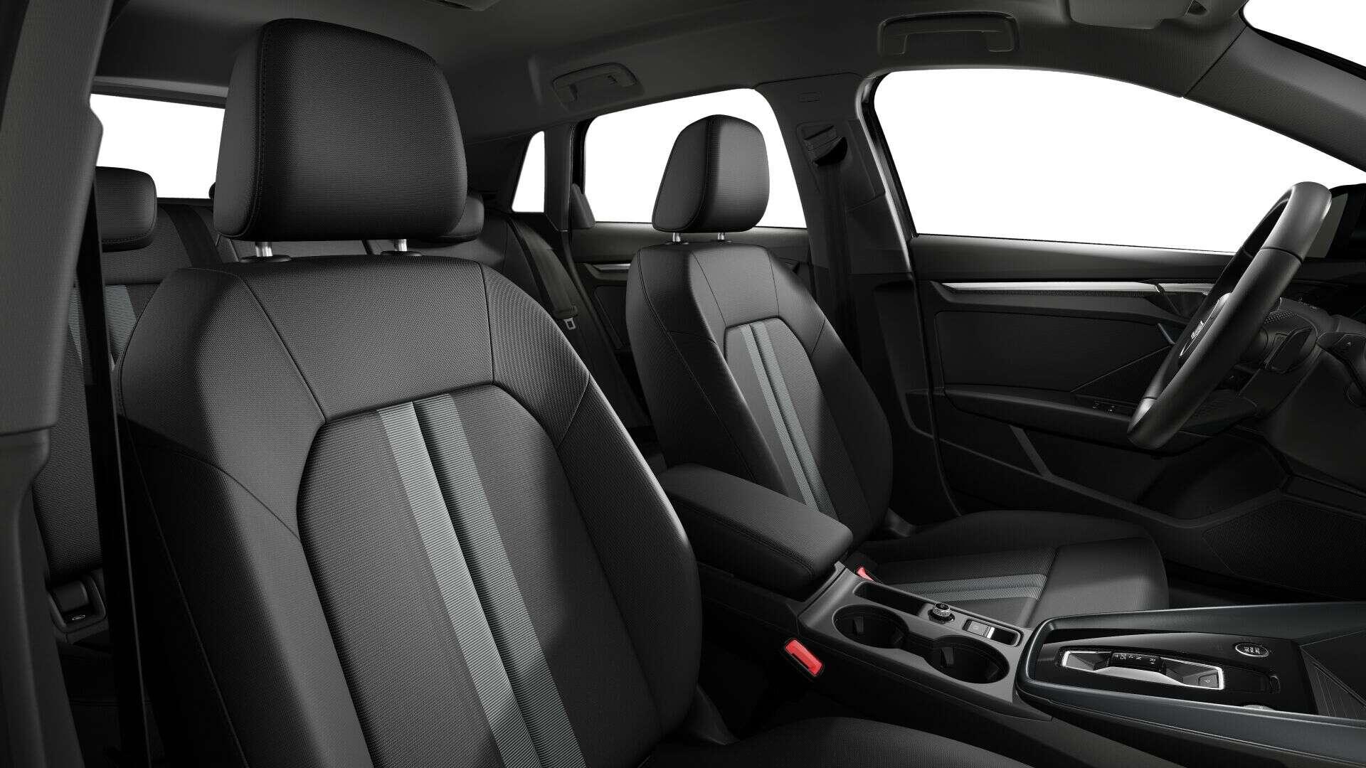 • Interieur: 4-Wege-Lendenwirbelstütze für die Vordersitze, Ambiente-Lichtpaket, Audi virtual cockpit plus, Dachhimmel Stoff, Farbe spezifisch, Dekoreinlage Feinlack vulkangrau, Einstiegsleisten mit Aluminiumeinlegern vorn, Fußmatten vorn und hinten, Innenspiegel abblendbar, Interieurapplikationen Aluminiumoptik, Lederlenkrad 3-Speichen mit Multifunktion plus und Schaltwippen, Mittelarmlehne vorn, Rücksitzlehne umklappbar, Sitzbezug / Polsterung: Stoff Konsens, Sitze vorn manuell einstellbar, USB-Anschlüsse mit Ladefunktion im Fond