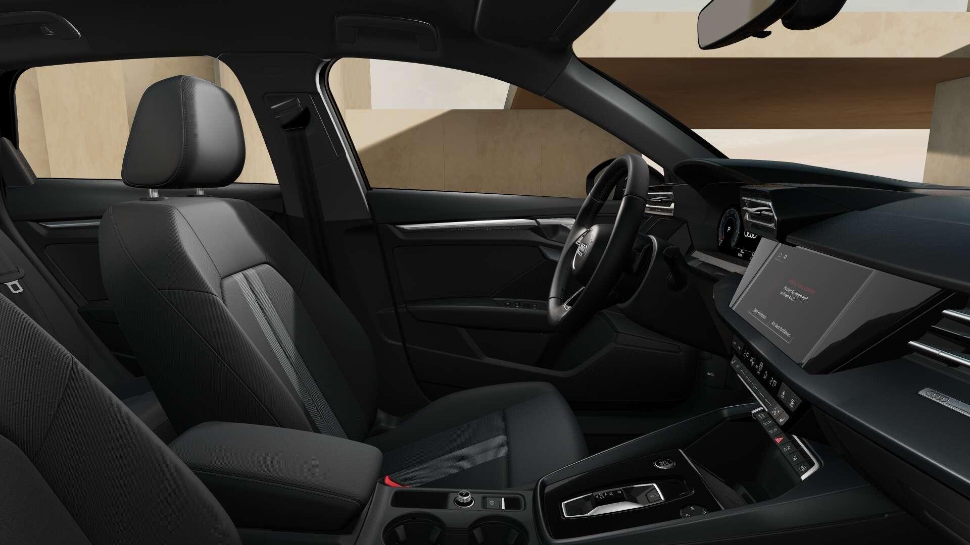 • Interieur: 4-Wege-Lendenwirbelstütze für die Vordersitze, Ambiente-Lichtpaket, Audi virtual cockpit plus, Dachhimmel Stoff, Farbe spezifisch, Dekoreinlage Feinlack vulkangrau, Einstiegsleisten mit Aluminiumeinlegern vorn, Fußmatten vorn und hinten, Innenspiegel abblendbar, Interieurapplikationen Aluminiumoptik, Lederlenkrad 3-Speichen mit Multifunktion plus und Schaltwippen, Mittelarmlehne vorn, Rücksitzlehne umklappbar, Sitzbezug / Polsterung: Stoff Konsens, Sitze vorn manuell einstellbar, USB-Anschlüsse mit Ladefunktion im Fond