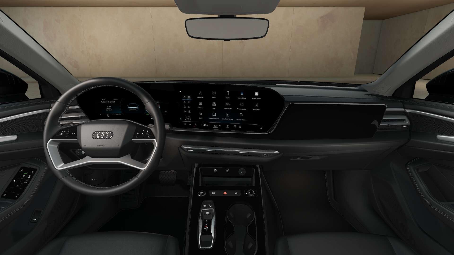 • Audio & Kommunikation: Audi connect Navigation & Infotainment, Audi connect Notruf & Service mit Audi connect Remote & Control, Audi Soundsystem, Digitaler Radioempfang, LTE-Unterstützung für Audi phone box, Navigationsgerät-High, Telefonablage mit induktiver Ladefunktion und Mobilfunk-Koppelantenne