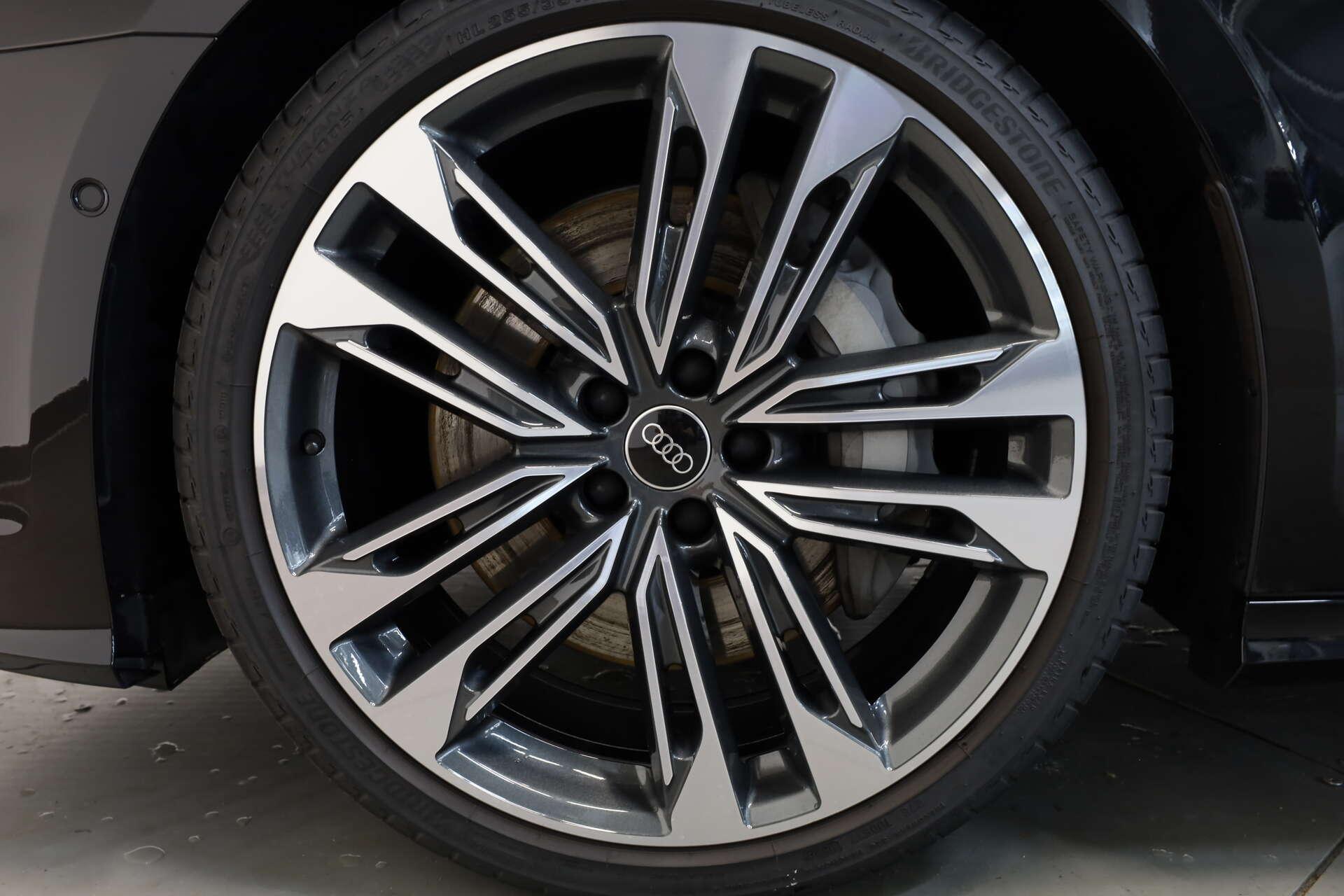 • Exterieur: Anhängevorrichtung, Außenspiegel mit Bordsteinautomatik, rechts, Dachreling Schwarz, e-tron Ladesystem kompakt (AC) mit Haushaltsstecker Typ E/F, Ladedose AC Typ 2, LED-Heckleuchten mit dynamischem Blinklicht, Mit Multifunktionskamera, Räder, 5-V-Doppelspeichen, graphitgrau, glanzgedreht, 8,5Jx21, Reifen 255/35 R21, Scheiben seitlich und hinten in Wärmeschutzverglasung, Sportfahrwerk, Start-Stop-System