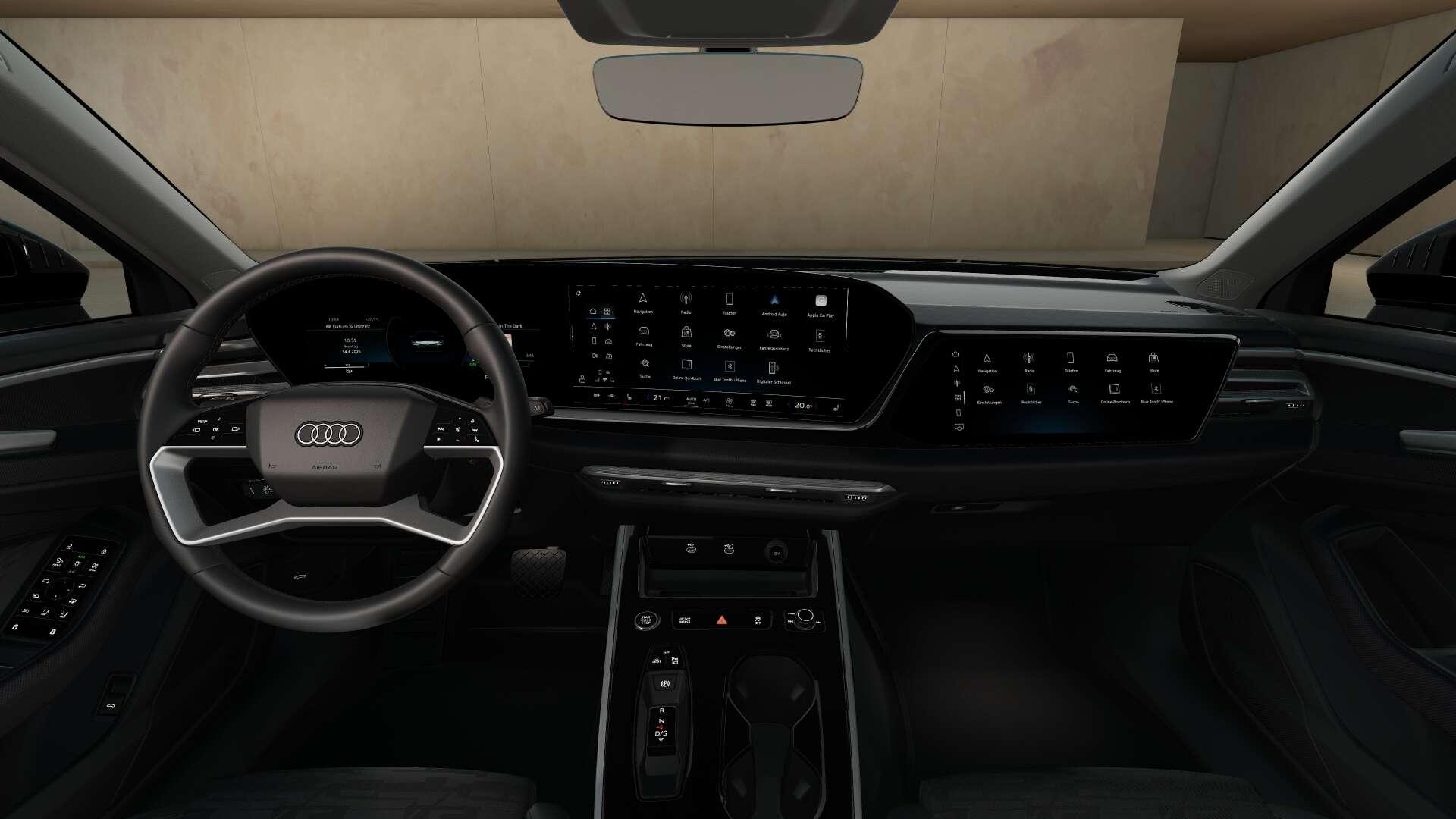 • Audio & Kommunikation: Audi connect Navigation & Infotainment, Audi connect Notruf & Service mit Audi connect Remote & Control, Audi Soundsystem, Digitaler Radioempfang, LTE-Unterstützung für Audi phone box, Telefonablage mit induktiver Ladefunktion und Mobilfunk-Koppelantenne