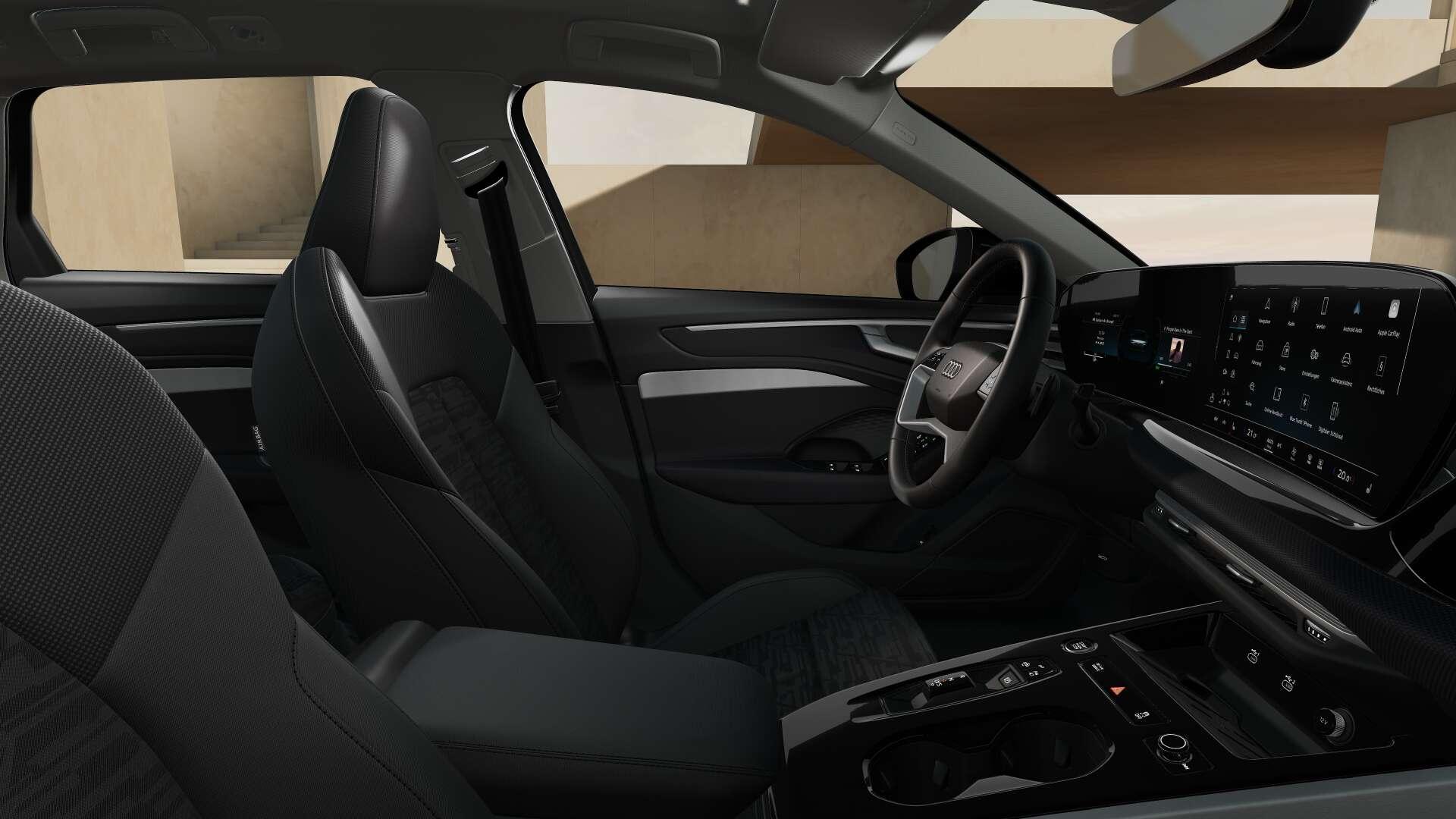 • Interieur: 4-Wege-Lendenwirbelstütze für die Vordersitze, Audi virtual cockpit plus, Dachhimmel Stoff, Farbe spezifisch, Dekoreinlagen Aluminium matt gebürstet silber, Doppelspeichen-Lederlenkrad mit Multifunktion und Schaltwippen, Einstiegsleisten mit Aluminiumeinlegern vorn, Fußmatten vorn und hinten, Innenausstattung: Interieurelemente in Stoff Impressum, umlaufend, Innenspiegel automatisch abblendend, Interieurapplikationen Aluminiumoptik, Interieur-Paket: Sportsitze, Sitzbezug Stoff, schwarz, Komfortmittelarmlehne vorn, Kopfstützen vorn, Lenkradapplikation Chromoptik, Lenkradeinstellung manuell, Memory-Funktion für den Fahrersitz und die Außenspiegel, MMI Beifahrerdisplay, Netztrennwand, Sitzbezug / Polsterung: Stoff Passage, Sportsitze vorn, Stoff Passage, USB-Anschlüsse mit Ladefunktion in erster und zweiter Sitzreihe