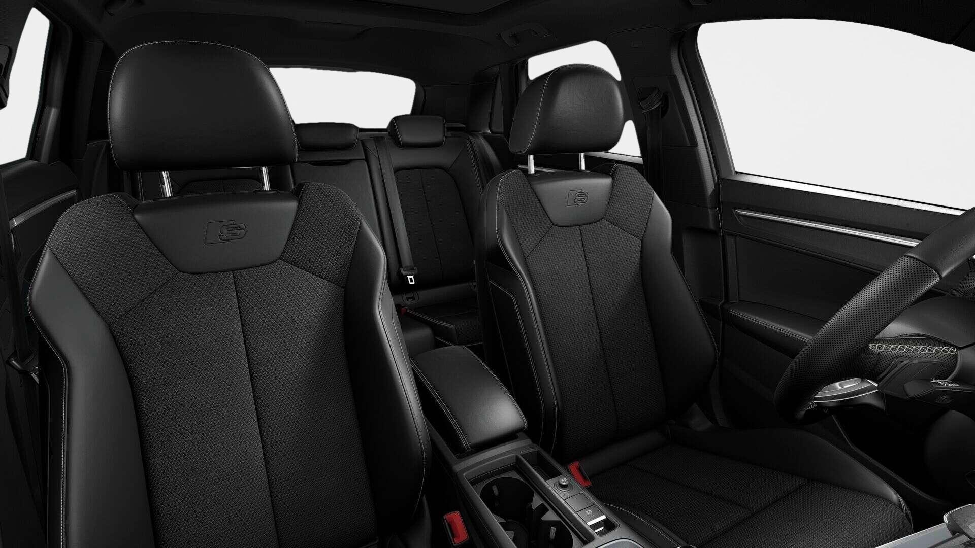 • Interieur: 4-Wege-Lendenwirbelstütze für die Vordersitze, 6 Lautsprecher, Akzentflächen schwarz glänzend, Ambiente-Lichtpaket plus, Audi virtual cockpit plus, Dachhimmel in Stoff schwarz, Dekoreinlage Aluminium matt gebürstet dunkel, Einstiegsleisten mit Aluminiumeinlegern vorn, beleuchtet, S-Schriftzug, Fußmatten vorn und hinten, Innenausstattung: Dekoreinlagen Akzentteile Feinlack, Innenausstattung: Dekoreinlagen Aluminium matt gebürstet, dunkel, Innenspiegel automatisch abblendend, rahmenlos, Interieurapplikationen Aluminiumoptik, Komfortmittelarmlehne vorn, Ladekantenschutz aus Edelstahl, Lederlenkrad, 3-Speichen, mit Multifunktion plus und Schaltwippen, Lenkrad (Leder - 3-Speichen) mit Multifunktion plus, Mikrofaser Dinamica Frequenz/Kunstleder mono.pur 550-Kombination mit S-Prägung, Mittelarmlehne vorn mit Fach, Pedalerie und Fußstütze aus Edelstahl, Rücksitzbank plus mit Mittelarmlehne und Cupholder, Sitzbezug / Polsterung: Stoff Puls / Kunstleder mono.pur 550 Kombination, Sportsitze vorn, Start-Stop-Knopf, Türarmauflage in Kunstleder