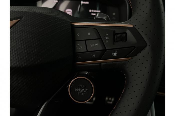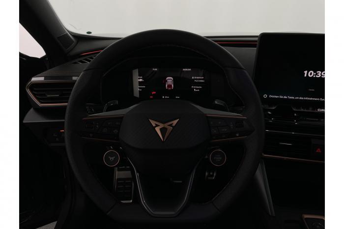 Auf Wunsch Lieferung vor Ihre Haustüre, Eu-weite Werksgarantie, nachrüstbare Extras auf Anfrage, deutsche Bedienungsanleitung 6 Lautsprecher, Android Auto, App Connect, Apple CarPlay, Bluetooth, Connectivity Box inkl. Wireless Charger, Digitaler Radioempfang DAB , Freisprecheinrichtung, Navigationssystem, Smart Link, Sprachsteuerung, Touchscreen-Display, USB-C-Schnittstelle 2 vorne / 2 hinten (Ladefunktion), Wireless Full Link Connectivity inkl. Android Auto und Apple CarPlay, Automatisch abblendendes Fernlicht, Automatische Coming- und Leaving-Home-Funktion, Blendfreies Fernlicht, Infinity Light, Dynamisches LED-Lichtband am Heck und beleuchtetem CUPRA Logo, LED - Tagfahrlicht, Lichtsensor, Matrix-LED-Scheinwerfer mit Signatur Ceremony, Nebelscheinwerfer, Smart Ambient Light, Tagfahrlicht, Türeinstiegsleisten beleuchtet, vorne, Voll-LED-Heckleuchten, Fensterheber elektrisch vorne und hinten, Fensterheber elektrisch, mit Einkleschutz und One-Touch-Funktion, Seitenscheiben ab 2. Sitzreihe und Heckscheibe dunkel getönt, CUPRA Supersport-Multifunktionslenkrad mit CUPRA Mode Selector, beheizbar, Dachhimmel in Schwarz, Durchladeeinrichtung, Innenspiegel automatisch abblendend, Lederlenkrad, Lenkrad höhen- und tiefenverstellbar, Lenkradheizung, Mittelarmlehne vorn, Mittelarmlehne vorne und hinten, Nichtraucherausführung, Schaltwippen am Lenkrad, Variabler Gepäckraumboden mit Staufächern im Gepäckraum, 3 Klimazonen, Climatronic mit 3-Zonen-Temperaturregelung, Dynamic Design Paket, Edge Paket, Intelligent Drive Paket XL (Spurwechselassistent ''Side Assist'' inkl. Totwinkel- und Ausparkassistent mit Ausstiegswarnung Spurhalteassistent Plus inkl. Travel Assist, Emergency Assist und Stauassistent PreCrash Assist (Proaktives Insassenschutzsystem) Top View Kamera Parklenkassistent ''Intelligenter Park Assist''), Licht-und-Sicht Paket, Pure Performance Paket inkl Matrix LED-Scheinwerfern, Winter-Paket (Vordersitze beheizbar), Winterpaket, 19 Leichtmetallräder Sandstorm Black/ Copper, glanzgedreht, Sommerreifen, ABS (Antiblockiersystem), Airbag für Fahrer und Beifahrer, Beifahrerairbag-Deaktivierung, Diebstahl-Warnanlage inkl. Innenraumüberwachung, Back-up-Horn und Abschleppschutz, ESP (Elektronisches Stabilitätsprogramm), ISOFIX-Kindersitz-Sicherungssystem, in der 2. Sitzreihe links und rechts inkl. Top-Tether-Verankerungspunkte, Kopfairbag-System, vorne und hinten, Notruf-Service, PreCrash Assist (Proaktives Insassenschutzsystem), Seitenairbag für Fahrer und Beifahrer, Seitenairbags hinten, Servolenkung, Beifahrersitz höhenverstellbar, CUPRA Sportschalensitze vorne mit Sitzmittelbahn in Dinamica, in Soul Schwarz mit Akzenten in Astro Blau, Elektrische Sitzeinstellung, Fahrersitz elektrisch einstellbar mit Memory Funktion, Fahrersitz höhenverstellbar, Geteilte Rücksitzbank, Lendenwirbelstütze Fahrerseite, elektrisch einstellbar, Rücksitzlehne asymmetrisch geteilt umklappbar, Sitzheizung, Anschlussgarantie 3 Jahre / 100.000 km, CUPRA Connect Plus (3 Jahre), 230-V Steckdose, Ausparkassistent, Automatische Distanzregelung ACC, Automatische Heckklappe, CUPRA Drive Profile, Einparkhilfe vorne und hinten, Elektronische Parkbremse inkl. Auto Hold Funktion, Exit Assist, Fernlichtassistent, Intelligenter Parklenkassistent, Kessy Advanced, Schlüsselloses Schließ- und Öffnungssystem, Müdigkeitserkennung, Regensensor, Reifenkontrollanzeige, Rückfahrkamera, Side Assist inkl. Totwinkelassistent, Spurhalteassistent Plus inkl. Travel Assist, Emergency Assist und Stauassistent, Spurwechselassistent, Tempomat, Top View Kamera, Ultraschall-Einparkhilfe, vorne und hinten, Umfeldbeobachtungssystem Front Assist mit City-Notbremsfunktion, Virtual Cockpit, Zentralverriegelung, Adaptive Fahrwerksregelung DCC, Anhängevorrichtung, schwenkbar mit elektrischer Entriegelung und Anhängerrangierassistent, Außenspiegel elektrisch beheizbar, Außenspiegel elektrisch einstell-, anklapp- und beheizbar, Außenspiegel elektrisch einstellbar, Außenspiegelkappen in Dark Aluminium, Dachreling in Glossy Black, Heckklappe elektrisch betätigt (Öffnung & Schließung) inkl. Sensorgesteuerter Öffnung & Schließung (Virtual Pedal), Leisten an den Seitenfenstern (außen) in Glossy Black, EU-Fahrzeug mit Tageszulassung