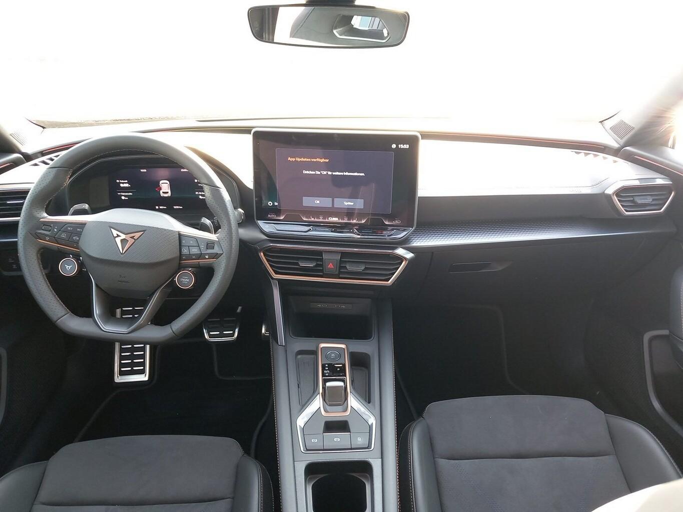 Matrix-LED-Scheinwerfer, Heckklappe/-Deckel elektr. betätigt (öffnen + schliessen, sensorgesteuert), Winter-Paket (Sitzheizung vorn), Full Link (MirrorLink, Apple CarPlay und Android Auto), Induktionsladeschale für Smartphone, Pedale Dark Aluminium-Design, Außenspiegel elektr. verstell- und heizbar mit Spiegelabsenkung und Welcome Light, Bluetooth Freisprecheinrichtung, Diebstahl-Warnanlage, Einparkhilfe vorn und hinten, Heckleuchten LED mit Ceremony Light und dynamischen Blinkern, Infotainment-System mit 12,9 Zoll Farb-Touchscreen, Kofferraum mit doppeltem Ladeboden, Lenkrad heizbar mit Multifunktion, Schaltfunktion und Cupra Fahrmodusschalter, LM-Felgen 19 Zoll "Sandstorm", Navigation in Verbindung mit dem Smartphone (über Apple Carplay / Android Auto /...), Reifen 245/40 R19, Schadstoffarm nach Abgasnorm Euro 6e (EU6 EA), Sitz vorn links elektr. verstellbar (mit Memory), Sitzpolster: Kunstleder/Dinamica Kombination, Stau-/Ablagefach unter Vordersitz rechts, Licht- und Sicht-Paket (Innenspiegel mit Abblendautomatik / Licht- und Regensensor / Lichtassistent (Coming Home, Leaving Home)), Schließ-/Startsystem Kessy Advanced (Zentralverriegelung mit Fernbedienung), Ambiente-Beleuchtung Smart Ambient Light, Dachhimmel schwarz, Einstiegsleisten (Aluminium) vorn, beleuchtet, Fensterzierleisten schwarz hochglänzend, Karosserie: 5-türig, Kombiinstrument digital (virtual cockpit), Lendenwirbelstütze Sitz vorn links, verstellbar, Mittelkonsole vorn mit Mittelarmlehne, Becherhalter, Ablagebox und Luftausströmer hinten, Motor 2,0 Ltr. - 228 kW 16V TSI, Otto-Partikelfilter (OPF), Parkbremse elektrisch, Sonnenblende links mit Spiegel (beleuchtet), Sonnenblende rechts mit Spiegel (beleuchtet), USB-Ladeanschlüsse (2-fach, Typ C) für 2.Sitzreihe, USB-Schnittstelle vorn (2-fach, Typ C), Anti-Blockier-System (ABS), Antriebs-Schlupfregelung (ASR), Antriebsart: Allradantrieb, Elektron. Differentialsperre (XDS), Elektron. Stabilitätskontrolle (ESC), Fahrassistenz-System: Adaptive Fahrwerksregelung (DCC), Getriebe 7-Gang - Doppelkupplungsgetriebe DSG, Klimaanlage Climatronic 3-Zonen, Airbag Beifahrerseite abschaltbar, Airbag Fahrer-/Beifahrerseite, Seitenscheiben hinten und Heckscheibe abgedunkelt, Sport-Schalensitze vorn mit integrierten Kopfstützen, Fahrassistenz-System: Fahrprofilauswahl (CUPRA Drive Profile), Dachreling schwarz, hochglänzend, Wärmeschutzverglasung, Fahrassistenz-System: Automatische Distanzregelung (ACC), Rückfahrkamera, Servolenkung elektro-mechanisch, Blinkleuchten LED in Außenspiegel integriert, Fahrassistenz-System: Fernlichtassistent, Tagfahrlicht LED
