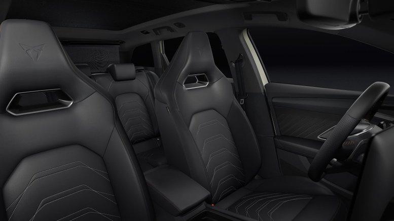 • Dynamic Design Paket [CUPRA Sportschalensitze vorne mit Sitzmittelbahn in Dinamica, Farbe Soul Schwarz mit Akzenten in Astro Blau / Fahrersitz elektrisch einstellbar mit Memory-Funktion / Lendenwirbelstütze Fahrerseite, elektrisch einstellbar / Außenspiegel mit Memory-Funktion / Winter-Paket, Vordersitze beheizbar]