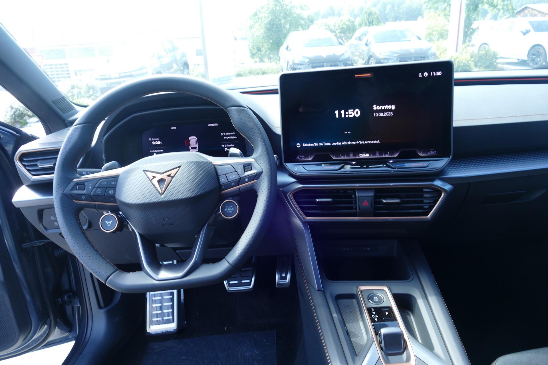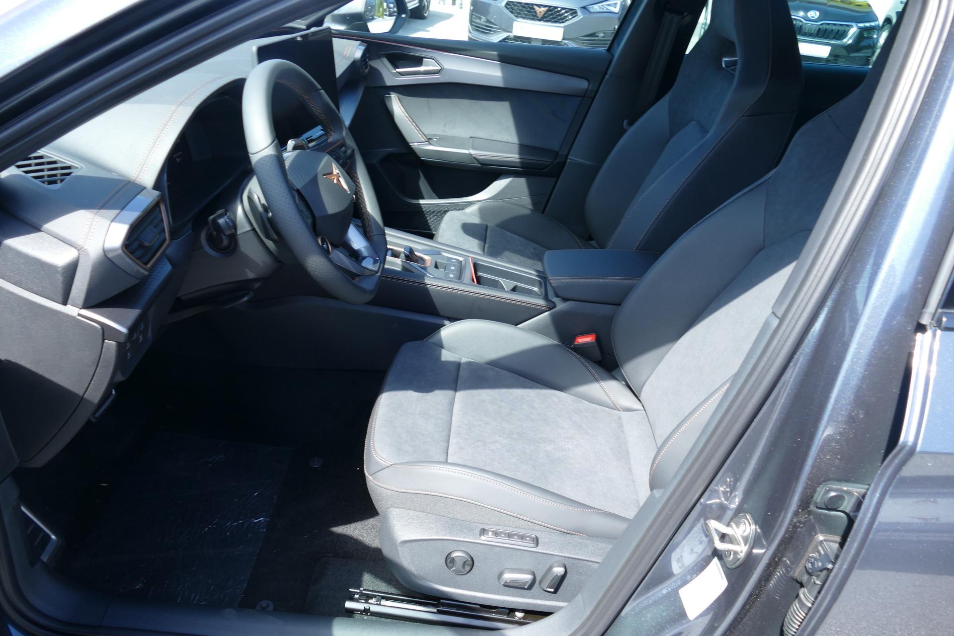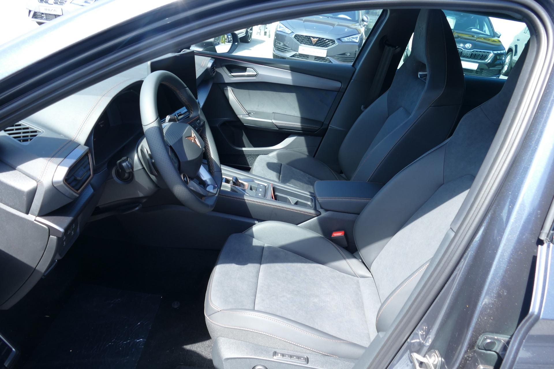 Innenausstattung Dynamic Design (CUPRA Sportschalensitze vorne mit Sitzmittelbahn in Dinamica, Farbe Soul Schwarz mit Akzenten in Astro Blau)