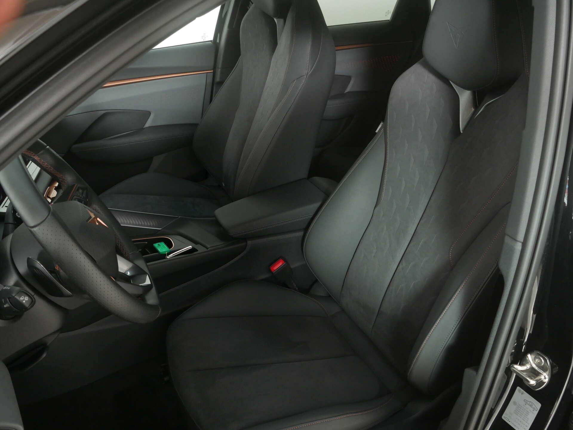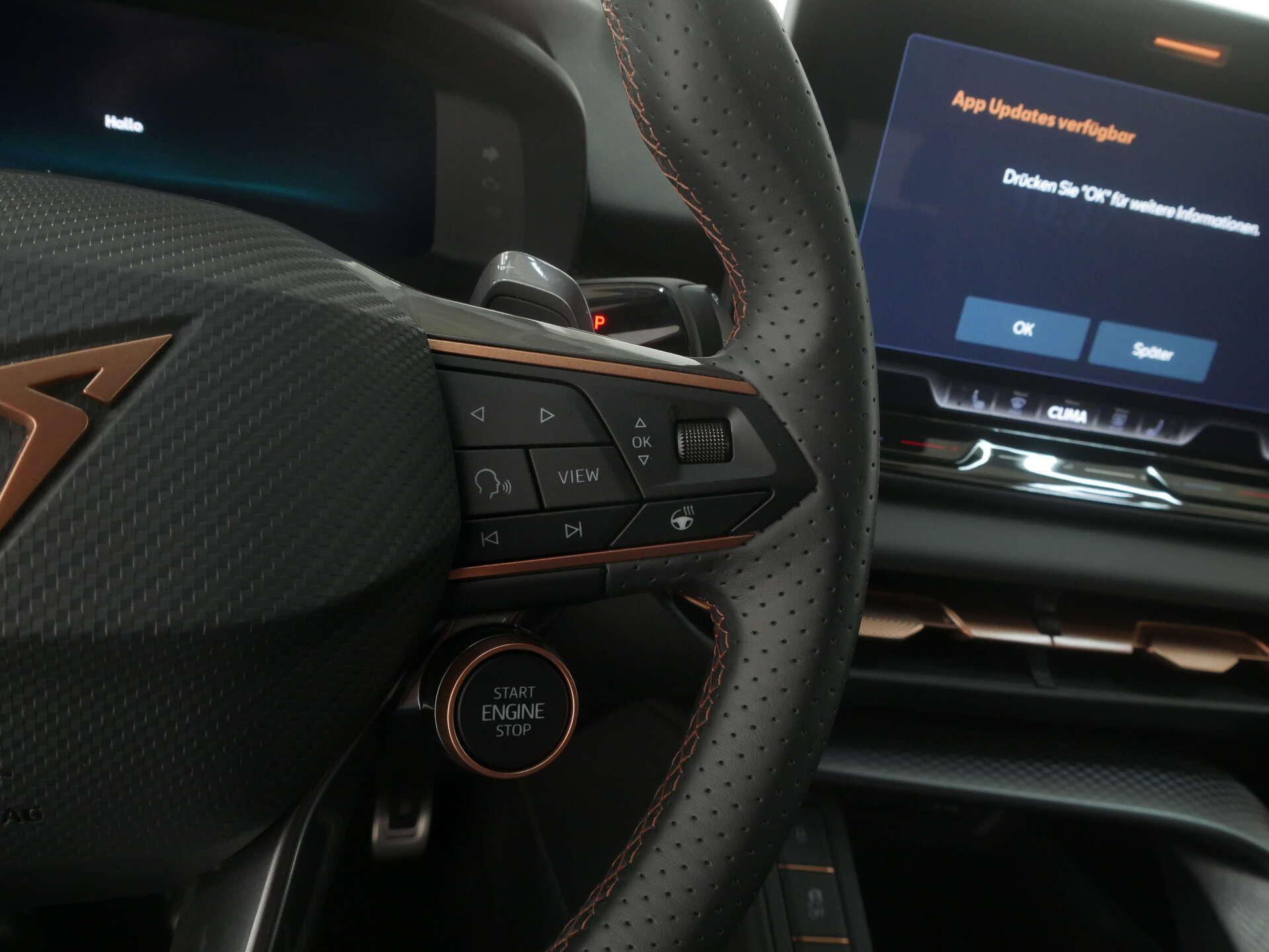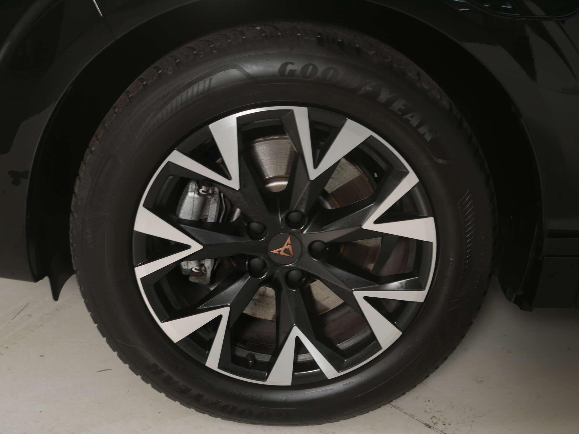 • Exterieur: 18" Ganzjahresreifen, 3D LED-Heckleuchten mit dynamischen Blinkleuchten und beleuchtetem CUPRA Logo, Anhängevorrichtung-Vorbereitung, Außenspiegelgehäuse und diverse Anbauteile in Kontrastfarbe, Dachreling, schwarz, Frontscheibe Wärmeschutzglas, Ganzjahresreifen 235/55 R18 100V, Leichtmetallräder 8J x 18, Mit Multifunktionskamera, Nebelschlusslicht einseitig, Rückfahrlicht beidseitig, Scheiben seitlich und hinten in Wärmeschutzverglasung, Start/Stopp-Anlage mit Rekuperation, Vorbereitung für Anhängevorrichtung, Zierleisten schwarz