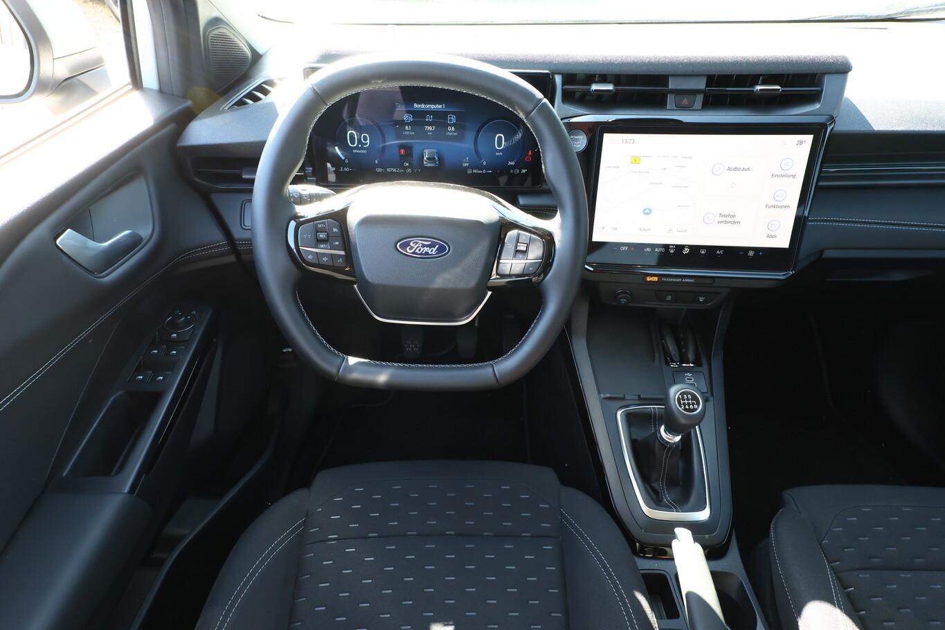 Verglasung hinten abgedunkelt (Privacy Glass), Ford Sync IV, LM-Felgen 7J x 17 Zoll, Reifen 215/55 R17, Audio-Navigationssystem Ford Cloud-Navigationssystem (FordPass Connect inkl. eCall / Kombiinstrument Digitalanzeige 12,8 Zoll / Smartphone-Integration (Apple CarPlay und Android Auto) / Sprachsteuerung und Bluetooth-Schnittstelle / USB-Anschluss / USB-Anschlüsse (2) vorn / Vorrüstung Mobiltelefon/Handy mit Bluetooth-/USB-Schnittstelle / Fahrassistenz-System: Sicherheitssystem SYNC mit automatischem Notruf), Mittelkonsole mit Armlehne (Getränkehalter vorn / Mittelarmlehne vorn mit Staufach und 12V-Anschluß), Intelligent Protection System (IPS) (Gurtstraffer / Warnanlage für Sicherheitsgurte hinten / Warnanlage für Sicherheitsgurte vorn / Airbag Beifahrerseite abschaltbar / Airbag Fahrer-/Beifahrerseite / Kopf-Schulter-Airbag vorn und hinten / Seitenairbag vorn), 6 Lautsprecher, Ambiente-Beleuchtung vorn (LED), Dachhimmel Stoff, Farbdisplay (12 Zoll), Innenraumfilter: Staub- und Pollenfilter, Innenspiegel mit Abblendautomatik, Intelligenter Geschwindigkeits-Begrenzer, Karosserie: 5-türig, Kopfstützen hinten mechan. verstellbar (3 Stück), Lackierung Cactus Grey, Lendenwirbelstütze Sitz vorn links, Mild-Hybrid 92 kW (Motor 1,0 Ltr. - 92 kW EcoBoost), Modellpflege, Otto-Partikelfilter (OPF), Radioempfang digital (DAB), Radstand 2588 mm, Reifen-Reparaturkit, Sitz vorn links höhenverstellbar, Sonnenblende links mit Spiegel (beleuchtet), Sonnenblende rechts mit Spiegel (beleuchtet), Türgriffe außen Wagenfarbe, Anti-Blockier-System (ABS), Fahrassistenz-System: Notbrems-Assistent, Fahrassistenz-System: Post-Collision-System, Antischlupfregelung (ASR), Antriebsart: Frontantrieb, Elektron. Stabilitäts-Programm (ESP), Getriebe 6-Gang - Typ: 6MX65, Klimaautomatik 2-Zonen, Fensterheber elektrisch vorn + hinten mit Komfortschließung, Isofix-Aufnahmen für Kindersitz, Power KeyFree-Startfunktion, Rücksitzlehne geteilt/klappbar (60:40), Sportsitze vorn, Zentralverriegelung mit Fernbedienung, Eco-Anzeige für verbrauchsoptimiertes Fahren (EcoCoach), Fahrassistenz-System: Berganfahr-Assistent (Hill-Holder), Fahrassistenz-System: Falschfahrer-Warnfunktion, Fahrassistenz-System: Verkehrsschildassistent, Geschwindigkeits-Regelanlage (Tempomat), Rückfahrkamera, Audiobedienung am Lenkrad, Servolenkung elektrisch, Außenspiegel elektr. verstell- und heizbar, Fahrassistenz-System: Fernlichtassistent (Scheinwerfer mit Abblendautomatik), Heckleuchten LED, Scheibenwischer mit Regensensor, Scheinwerfer LED, Scheinwerfer-Assistent mit Tag-/Nachtsensor, Einparkhilfe hinten, Fahrassistenz-System: Spurhalteassistent mit Müdigkeitserkennungs-Sensor, Reifendruck-Kontrollsystem, Start/Stop-Anlage