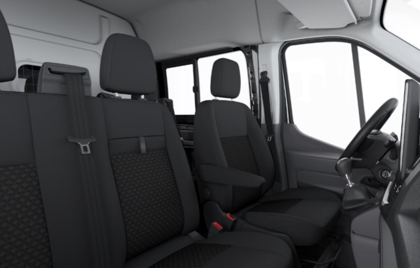 Karosserie/Aufbau: Doppelkabine, Stahlfelgen 6,5x16, Heckflügeltüren ohne Verglasung (Öffnungswinkel 256 Grad), Anhängerkupplung: Kugelkopf fest (Anhänger-Stabilisierungs-Programm (TSA) / Anhängersteckdose 13-polig), Reserverad in Fahrbereifung, Feststellbremse elektrisch, Sitz-Paket 9 / 15 Fahrersitz (4-fach verstellbar) - Beifahrerdoppelsitz inkl. Sitzheizung, Stoff (Sitze im Fahrerhaus: Fahrersitz mit Lendenwirbelstütze / Armlehne Fahrersitz), Frontscheibe heizbar, Laderaumtrennwand Kunststoff - Spritzwand, Reifendruck-Kontrollsystem, 3 Bremsleuchte, 4 Lautsprecher, Audio-/Radio-Fernbedienung am Lenkrad, Audiosystem Ford SYNC 4 mit 12" Touchscreen, Audiosystem: Radio mit USB und Bluetooth-Freisprecheinrichtung, Elektr. Fensterheber vorn, Fahrassistent-System: Fernlichtassistent, Fahrassistenz-System: Notrufsystem, Fahrassistenz-System: Pre-Collision-System, Fahrassistenz-System: Spurhalteassistent, Fahrassistenz-System: Verkehrszeichenerkennung, Falschfahrer-Warnfunktion, Geschwindigkeits-Regelanlage (Tempomat), Handschuhfach abschließbar, Kopfstützen vorn verstellbar, Laderaumleuchte, Lenkrad (Leder), Leseleuchten, Manueller DPF Regenerator, Nebelscheinwerfer, Parkpilotsystem vorn und hinten, Rückfahrkamera, Rücksitz-Paket 2 (3er-Sitzbank 2.Reihe), Sicherheitsgurt-Kontrollsystem, Technologie-Paket 2, Verzurrösen, Ablage im Dachhimmel Fahrerhaus, Heizung mit Umluftschaltung, Karosserievariante: Mittelhohes Dach, Motor 2,0 Ltr. - 121 kW EcoBlue KAT, Radstand 3750 mm, Scheibenwischer mit Intervallschaltung, regulierbar, Schiebetür Lade-/Fahrgastraum rechts, Schmutzfänger hinten, Zul. Gesamtgewicht 3,50 t, Anti-Blockier-System (ABS), Fahrassistenz-System: Notbrems-Assistent, Antriebsart: Heckantrieb, Elektron. Stabilitäts-Programm (ESP), Getriebe 6-Gang, Klimaautomatik, Zentralverriegelung mit Fernbedienung, Bordcomputer, Wärmeschutzverglasung leicht getönt, Fahrassistenz-System: Berganfahr-Assistent, Außenspiegel elektr. verstell- und heizbar, Blinkleuchte in Außenspiegel integriert, Tagfahrlicht, Rußpartikelfilter, Start/Stop-Anlage
