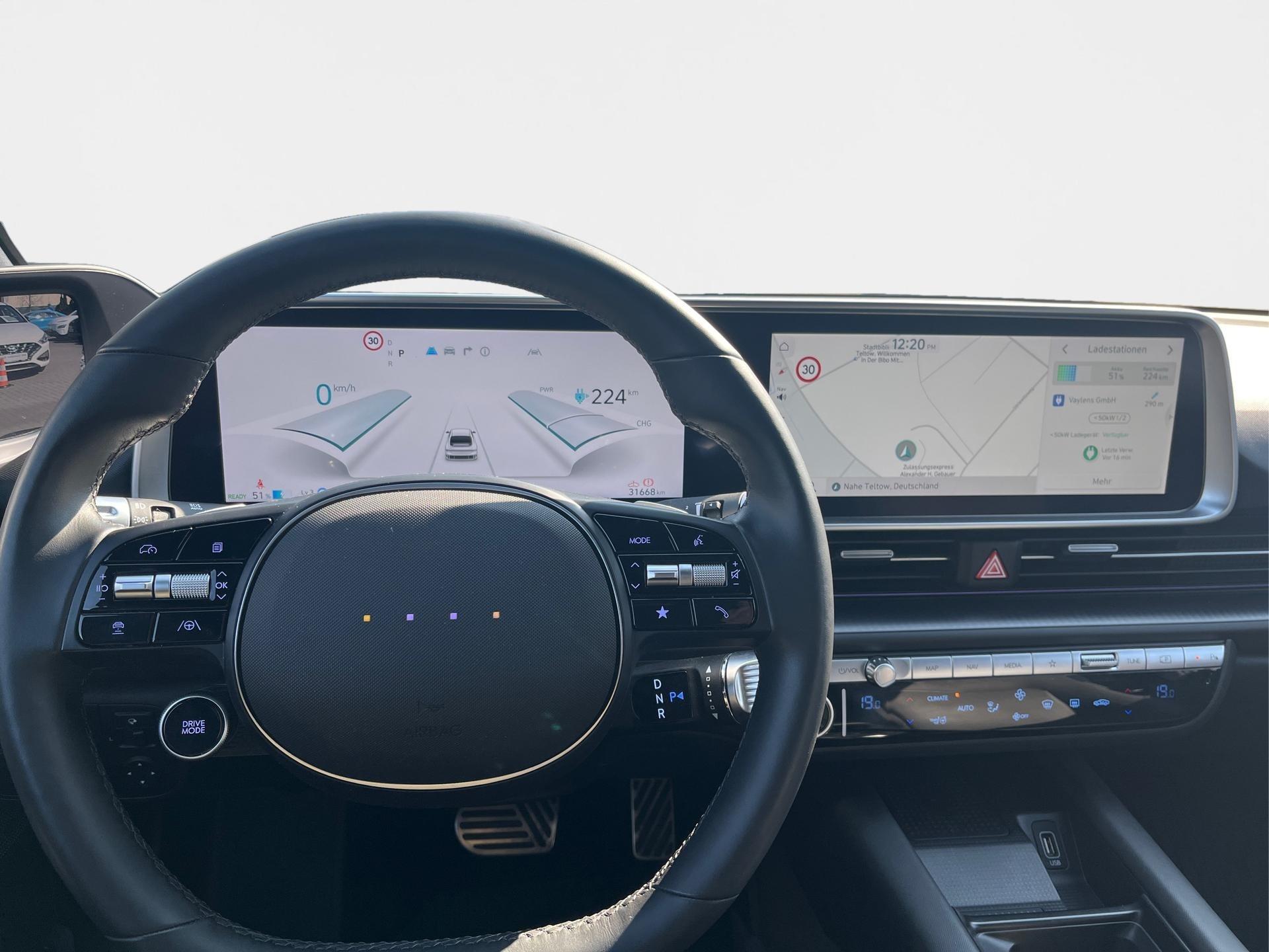 IONIQ 6 Allradantrieb 77,4 kWh Batterie (325 PS) UNIQDer Hyundai IONIQ 6 steht für aerodynamisches Design, modernste Elektromobilität und beeindruckende Performance. Mit seinem leistungsstarken Allradantrieb und 325 PS bietet er ein souveränes, dynamisches Fahrerlebnis bei gleichzeitig hoher Effizienz. Der großzügige Innenraum, innovative Technik und das elegante Erscheinungsbild machen den IONIQ 6 zu einer Premium-Limousine der neuen Generation.AusstattungDigitale Außenspiegel - Die digitalen Außenspiegel ersetzen klassische Spiegel durch Kameras und hochauflösende Displays im Innenraum. Sie verbessern die Aerodynamik, reduzieren Windgeräusche und bieten auch bei schlechten Licht- und Wetterverhältnissen eine optimale Sicht.GarantieHerstellergarantie bis 09/2031Langfristige Sicherheit und sorgenfreies elektrisches Fahren dank der umfangreichen Herstellergarantie.Unsere ServicesProbefahrt jederzeit möglichFaire Inzahlungnahme Ihres aktuellen FahrzeugsIndividuelle Finanzierungs und LeasingangeboteWichtige HinweiseDie vollständigen Ausstattungsdetails entnehmen Sie bitte dem offiziellen Fahrzeugprospekt.Abbildungen können beispielhaft sein und vom Original abweichen.