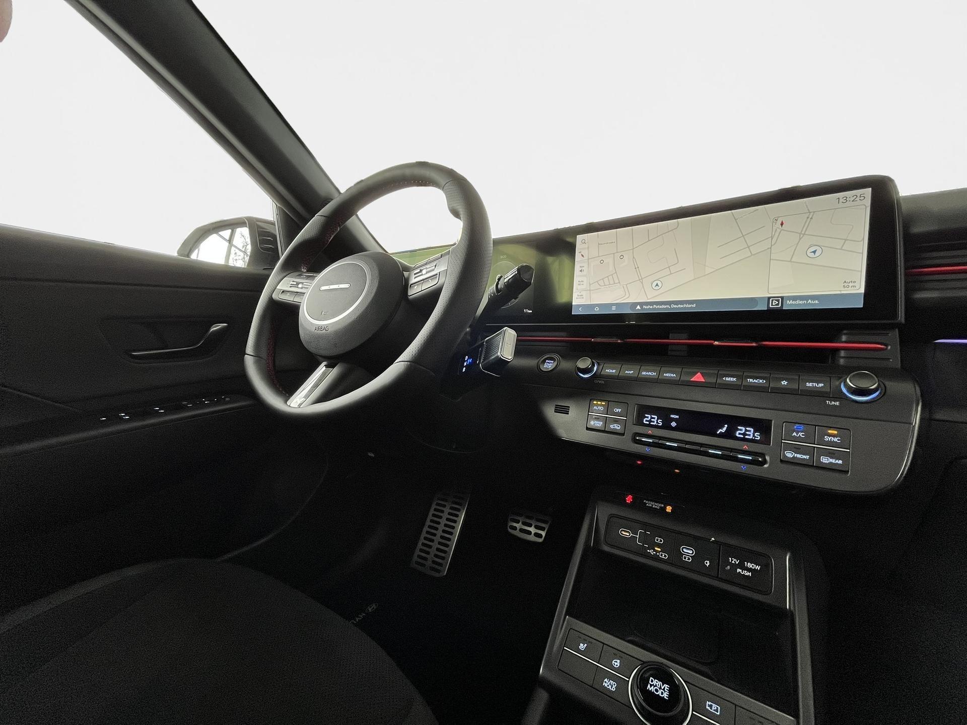 Der KONA HEV N Line X verbindet sportliches Design mit effizienter Hybridtechnologie. Das markante N-Line-Styling, kombiniert mit modernster Ausstattung, sorgt für ein dynamisches Auftreten und ein komfortables Fahrerlebnis.