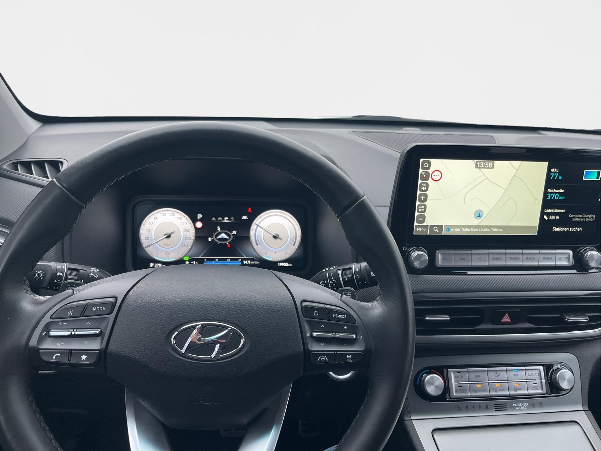 AusstattungNavigations-Paket – sorgt mit einem hochauflösenden Touchscreen, Echtzeit-Navigation und Smartphone-Integration für beste Orientierung und Konnektivität.Assistenz-Paket – bietet zusätzliche Sicherheits- und Komfortfunktionen wie erweiterte Fahrerassistenzsysteme, die jede Fahrt entspannter und sicherer machen.Dach-Lackierung – verleiht dem Fahrzeug einen sportlichen, zweifarbigen Look und unterstreicht den modernen Charakter des KONA Elektro.