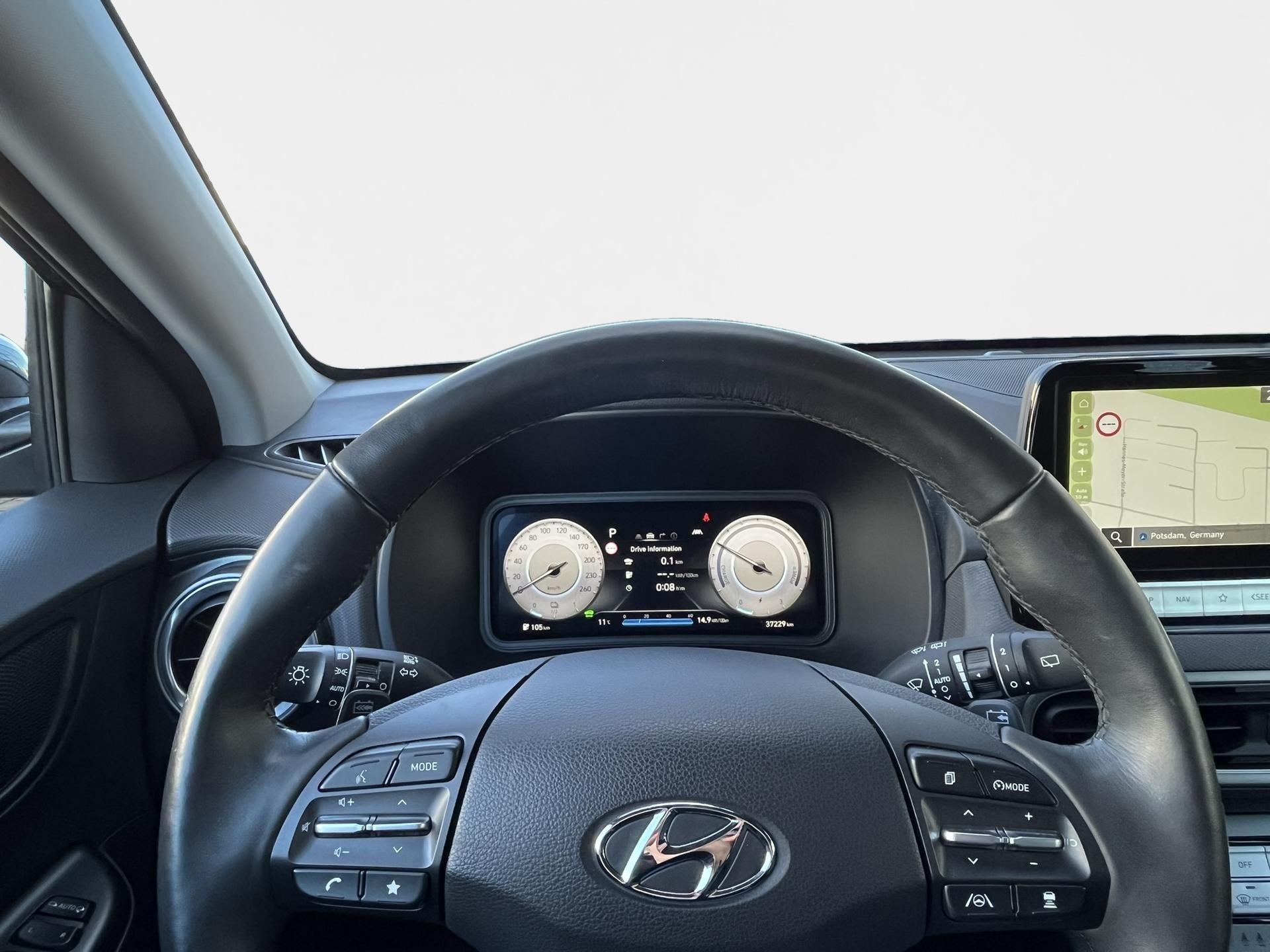Hyundai KONA Elektro MY23 (150 kW) TRENDDer Hyundai KONA Elektro im Modelljahr 2023 überzeugt mit kraftvollem Elektroantrieb, modernem Design und hoher Alltagstauglichkeit. Mit 150 kW Leistung bietet er eine dynamische Beschleunigung und lokal emissionsfreies Fahrvergnügen. Die erhöhte Sitzposition, der komfortable Innenraum und die fortschrittliche Technik machen ihn zum idealen Begleiter für Stadtverkehr und Langstrecke.AusstattungNavigations-Paket - Das Navigations-Paket umfasst ein integriertes Navigationssystem mit großem Touchdisplay, intuitiver Bedienung und erweiterten Konnektivitätsfunktionen für eine komfortable und sichere Routenführung.GarantieHerstellergarantie bis 12/2030Profitieren Sie von langfristiger Sicherheit und sorgenfreiem Fahrvergnügen.Unsere ServicesProbefahrt jederzeit möglichFaire Inzahlungnahme Ihres aktuellen FahrzeugsIndividuelle Finanzierungs- und LeasingangeboteWichtige HinweiseDie vollständigen Ausstattungsdetails entnehmen Sie bitte dem offiziellen Fahrzeugprospekt.Abbildungen können beispielhaft sein und vom Original abweichen