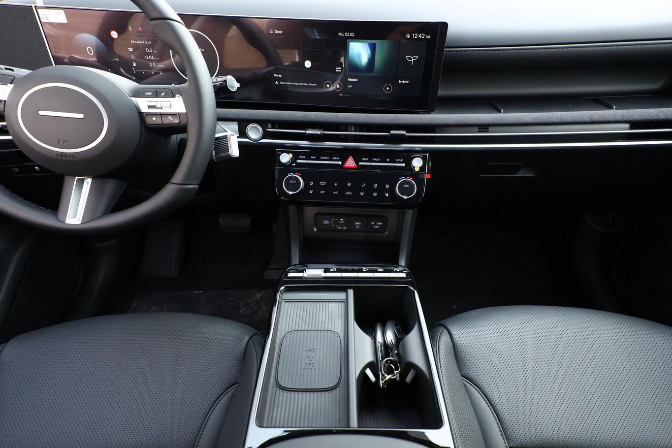 Panorama-Schiebedach, Assistenz-Paket (Einparkhilfe seitlich / Fahrassistenz-System: City-Notbremsfunktion, rückwärts (PCA-R) / Kamerasystem Around View / Fahrassistenz-System: Totwinkel-Assistent mit Monitoranzeige (BVM) / Fahrassistenz-System: Remote Parklenkassistent (Remote Smart Parking Assist, RSPA)), Fahrwerksdämpfung elektronisch geregelt (ASD / ECS), Geschwindigkeits-Begrenzeranlage (Speed-Limiter), Gurtstraffer, Radioempfang digital (DAB+), USB-Anschluss Mittelkonsole, Fahrassistenz-System: Spurfolgeassistent (LFA), Lenksäule (Lenkrad) höhen-/längsverstellbar, LM-Felgen 19", Nebelscheinwerfer, Reifen 235/50 R19, Schadstoffarm nach Abgasnorm Euro 6e (EU6 EA), Smartphone-Schnittstelle (Apple CarPlay & Android Auto), Sprachsteuerung, Zentralverriegelung mit Fernbedienung, Dachspoiler (3. Bremsleuchte), Design-Paket (Kühlergrill in dunkler Optik / Heckleuchten LED / Tagfahrlicht LED in dunkler Optik), Digital Cockpit (Instrumentenanzeige Digital) (Kombiinstrument digital mit Panorama-Display (Curved) / Bordcomputer), Sound-System KRELL (7 Lautsprecher / Subwoofer), Sitzbezug / Polsterung: Leder (Komfortsitze vorn (inkl. Belüftung / Sitzheizung)), Lenkrad (Leder) (Lenkrad (Leder) 3-Speichen / Lenkrad (Leder) mit Multifunktion), Aktives Bremslicht (ESS), Anhänger-Stabilisierungs-Programm (TSA), Außenspiegel lackiert, Fahrassistenz-System: Autobahnassistent 1.5 (Highway Driving Assist, HDA 1.5), Fahrassistenz-System: Insassenalarm (Rear Occopant Alert, ROA), Fahrassistenz-System: Multikollisionsbremse (Multi Collision Brake), Frontscheibe Verbundglas, Heckscheibe heizbar, Hybrid 158 kW (Motor 1,6 Ltr. - 118 kW T-GDI), Induktionsladeschale für Smartphone, Innenspiegel mit Abblendautomatik, Karosserie: 5-türig, Lendenwirbelstütze Sitz vorn links, elektr. verstellbar, Lenkrad heizbar, Nebelschlussleuchte, Otto-Partikelfilter (OPF), Parkbremse elektrisch (EPB), Radstand 2680 mm, Schalt-/Wählhebel (Shift by Wire), Sitz vorn links höhenverstellbar, Touchscreen-Farbdisplay (12,25 Zoll), Türgriffe außen Wagenfarbe, Warnanlage für Sicherheitsgurte, Fahrer-/Beifahrerseite, Audio-Navigationssystem, Freisprecheinrichtung Bluetooth, Anti-Blockier-System (ABS), Antriebsart: Frontantrieb, Elektron. Stabilitätskontrolle (ESC) mit Bremsassistent, Wegfahrsperre (elektronisch), Getriebe Automatik - (6-Stufen), Klimaautomatik 3-Zonen, Airbag Beifahrerseite, Airbag Fahrerseite, Digital Key, Fensterheber elektr. mit Einklemmschutz, Fensterheber elektrisch vorn und hinten, mit Auf-/Ab-Automatik, Isofix-Aufnahmen für Kindersitz, Kopf-Airbag-System, Mittelarmlehne vorn, Rücksitzlehne geteilt/klappbar, Seitenairbag vorn, Seitenairbag vorn mitte (Central Airbag), Sitzheizung vorn, Smart-Key, Sonnenschutzrollo an Türscheiben hinten, Verglasung hinten abgedunkelt (Privacy Glass), Head-up-Display, Dachreling, Heckklappe/-Deckel elektr. betätigt (Öffnung, sensorgesteuert), Verglasung getönt, Fahrassistenz-System: Berganfahrhilfe, Fahrassistenz-System: Verkehrszeichenerkennung, erweitert (Geschwindigkeits-Regel-/Begrenzeranlage), Geschwindigkeits-Regelanlage (Tempomat) mit Abstandsregelung ACC, Fahrassistenz-System: Sicherheitssystem mit automatischem Notruf (ERA GLONASS / eCall), Lenkrad mit Schaltwippen, Servolenkung, Außenspiegel elektr. anklappbar, Einschaltautomatik für Fahrlicht / Lichtsensor, Fahrassistenz-System: Fernlichtassistent, Matrix-LED-Scheinwerfer, Scheibenwischer mit Regensensor, Fahrassistenz-System: aktiver Spurhalteassistent (LKAS, Lane Keep Assist System), Fahrassistenz-System: Aufmerksamkeits-Assistent, Reifendruck-Kontrollsystem, Start-Stop-Knopf, Start/Stop-Anlage