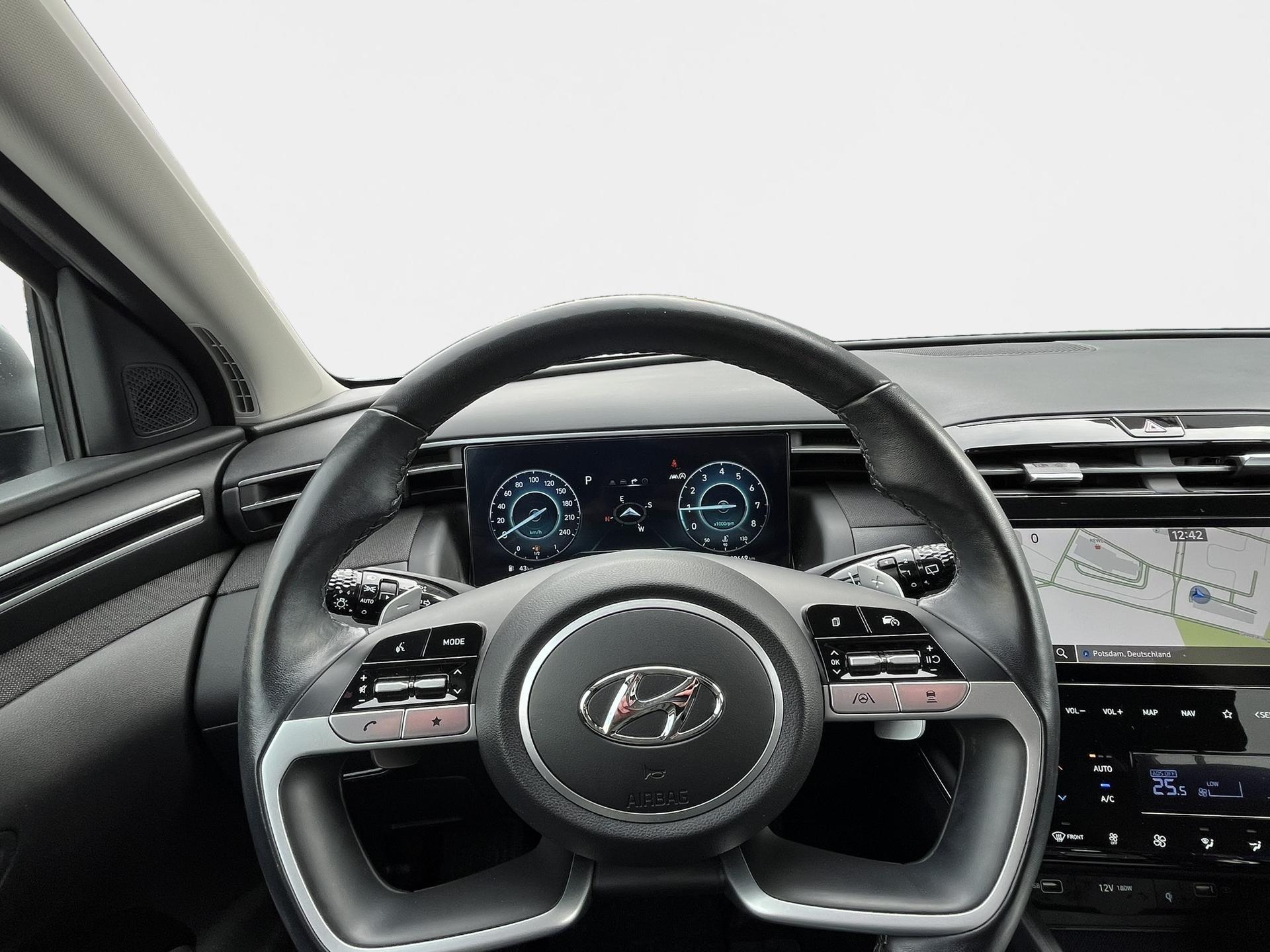 Hyundai TUCSON 1.6 GDI Turbo 7-DCT 2WD TRENDDieser Hyundai TUCSON kombiniert kraftvollen 1.6 GDI Turbomotor mit komfortablem 7-Gang-Doppelkupplungsgetriebe und bietet ein dynamisches sowie zugleich entspanntes Fahrerlebnis. Das moderne SUV-Design, die erhöhte Sitzposition und das großzügige Platzangebot machen ihn zum idealen Begleiter für Alltag, Familie und lange Reisen.AusstattungElektrische Heckklappe - Komfortables und müheloses Öffnen und Schließen des Kofferraums – ideal beim Be- und Entladen, besonders mit vollen Händen.GarantieHerstellergarantie bis 12/2028Für zusätzliche Sicherheit und sorgenfreien Fahrspaß.Unsere ServicesProbefahrt jederzeit möglichFaire Inzahlungnahme Ihres aktuellen FahrzeugsIndividuelle Finanzierungs- und LeasingangeboteWichtige HinweiseDie vollständigen Ausstattungsdetails entnehmen Sie bitte dem offiziellen Fahrzeugprospekt.Abbildungen können beispielhaft sein und vom Original abweichen.