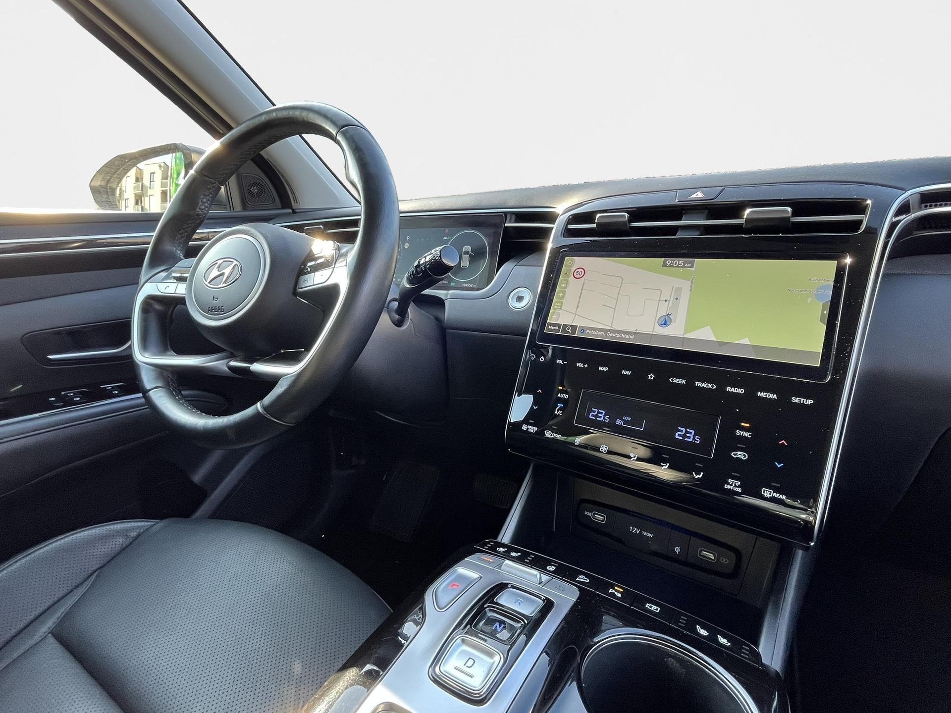 Hyundai TUCSON Plug-in-Hybrid 1.6 T-GDi (265 PS) 6-AT 4WD PRIME-Paket MJ22Der Hyundai TUCSON Plug-in-Hybrid im Modelljahr 2022 kombiniert kraftvolle Performance mit effizienter Hybridtechnologie und hoher Alltagstauglichkeit. Mit einer Systemleistung von 265 PS bietet der Plug-in-Hybrid eine souveräne Beschleunigung, während der elektrische Fahrmodus lokal emissionsfreies Fahren auf kurzen Strecken ermöglicht.AusstattungAssistenz-Paket + - Das Assistenz-Paket + erweitert die Sicherheits- und Fahrerassistenzsysteme und unterstützt Sie aktiv in verschiedensten Verkehrssituationen – für noch mehr Komfort und Sicherheit im Alltag.HerstellergarantieHerstellergarantie bis 12/2027Profitieren Sie von langfristiger Sicherheit und sorgenfreiem Fahrspaß.Unsere ServicesProbefahrt jederzeit möglichFaire Inzahlungnahme Ihres aktuellen FahrzeugsIndividuelle Finanzierungs- und LeasingangeboteWichtige HinweiseDie vollständigen Ausstattungsdetails entnehmen Sie bitte dem offiziellen Fahrzeugprospekt.Abbildungen können beispielhaft sein und vom Original abweichen.