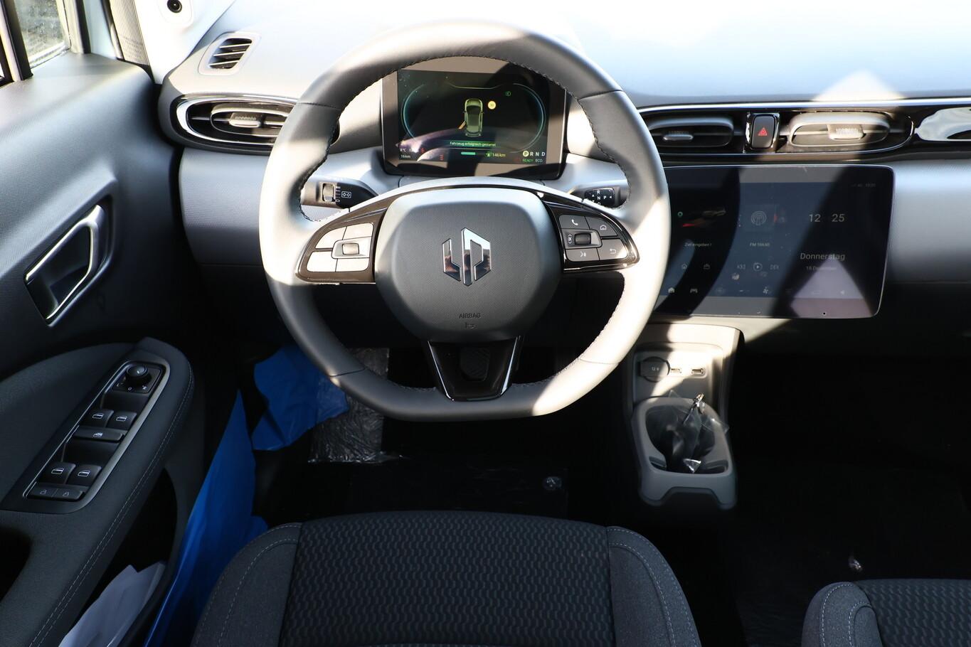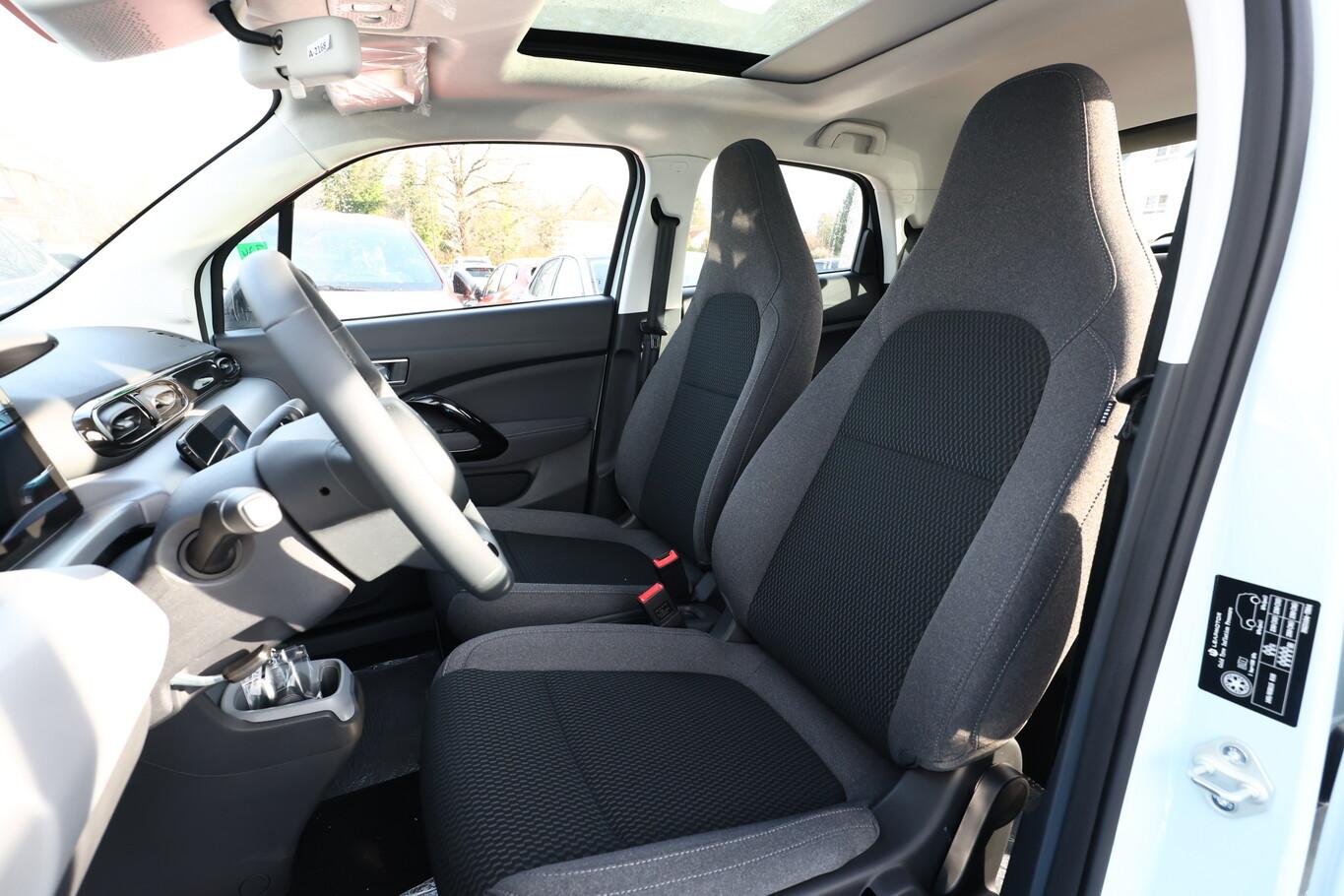 Außenspiegel elektr. verstellbar, Kombiinstrument digital 8", LM-Felgen 15", Reifen 165/65 R15, Elektr. Bremskraftverteilung (EBD), Elektromotor 70 kW (cont. 38 kW), Farbbildschirm in Mittelkonsole, Feststellbremse elektrisch, Karosserie: 5-türig, Sitzbezug / Polsterung: Stoff schwarz, Audio-Navigationssystem: Online, Bluetooth-Schnittstelle, USB-Anschluss, Anti-Blockier-System (ABS), Fahrassistenz-System: Frontkollisionswarnung, Fahrassistenz-System: Notbrems-Assistent, Dynamische Stabilitäts-Control (DSC), Elektron. Stabilitätskontrolle (ESC), Elektron. Traktionskontrolle, Getriebe für Elektrofahrzeug, Klimaautomatik, Airbag Fahrer-/Beifahrerseite, Fensterheber elektrisch, Seitenairbag hinten, Seitenairbag vorn, Panoramadach (Glas), Adaptive Geschwindigkeitsregelanlage (ACC), Fahrassistenz-System: Intelligente Geschwindigkeitsanpassung (ISA), Rückfahrkamera, Notrufsystem (eCall), Lenkrad mit Multifunktion, Servolenkung elektr. (EPS), Fahrassistenz-System: Totwinkel-Assistent (BSD), Tagfahrlicht LED, Parkpilotsystem hinten (Parksensoren), Fahrassistenz-System: aktiver Spurhalteassistent (LKA), Fahrassistenz-System: Aufmerksamkeits-Assistent (Müdigkeitserkennungs-Sensor), Fahrassistenz-System: Autonomer Notbrems-Assistent (AEB), Fahrassistenz-System: Spurverlassenswarnung (LDW)