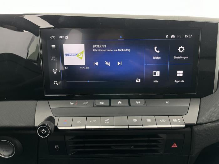 Multimedia Infotainment System mit 10?-Fahrerinfodisplay und 10?-Touchscreen-Farbdisplay (Pure Panel), 6 Lautsprecher, App Connect, Digitaler Radioempfang (DAB+), Freisprecheinrichtung via Bluetooth-Schnittstelle, Haifischflossenantenne in Hochglanz-schwarz, Kabellose Smartphone-Integration via Apple CarPlay und Android Auto, USB-Anschluss und USB-Ladegerät, Automatisches Abblendlicht, Fernlicht-Assistent, LED-Blinker, LED-Innenraumbeleuchtung inkl. Leseleuchten, vorn und hinten, sowie Kofferraumbeleuchtung, LED-Rückleuchten, LED-Scheinwerfer, LED-Tagfahrlicht, Lichtsensor, manuelle Scheinwerfer-Leuchtweitenregulierung, Fensterheber elektrisch vorne und hinten, Solar Protect®-Wärmeschutzverglasung, stark getönt, im Fond, Innenrückspiegel, autom. abblendend, Lenkrad aus veganem Kunstleder, abgeflacht, mit Lenkradfernbedienung, Lenkradheizung, Mittelkonsole mit Getränkehalter, Staufächer, Ein-Zonen-Klimatisierungsautomatik, Komfort-Paket Edition, 16''-Leichtmetallfelgen mit Allwetterreifen, Reifen-Reparatur-Set, Not- und Pannenruf, 2-Wege-Kopfstützen, Beifahrersitz 6-fach einstellbar (Länge, Höhe, Lehnenneigung), Fahrersitz mit Lendenwirbelstütze, Fahrersitz: Ergonomischer Sport-Aktiv-Sitz (AGR1), 10-fach einstellbar (Länge, Höhe, Lehnenneigung, Sitzkissenneigung, Oberschenkelauflage, Sitzheizung, merhstufig für Fahrer und Beifahrer, Automatischer Geschwindigkeits-Assistent, Einparkhilfe vorne und hinten, Frontkollisionswarner mit automatischer Gefahrenbremsung, Fußgängererkennung, Müdigkeitserkennung, Regensensor, Schlüsselloses Startsystem ?Keyless Start?, Spurhalte-Assistent, Verkehrsschilderkennung, Virtual Cockpit, Anhängerkupplung Vorbereitung, Außenspiegel: elektrisch einstell- und beheizbar, manuell anklappbar, Außenspiegelgehäuse in Schwarz, Dach-Designlinie in Schwarz, Dachreling, Opel Vizor mit Rahmen in Hochglanzschwarz, EU-Fahrzeug mit Tageszulassung