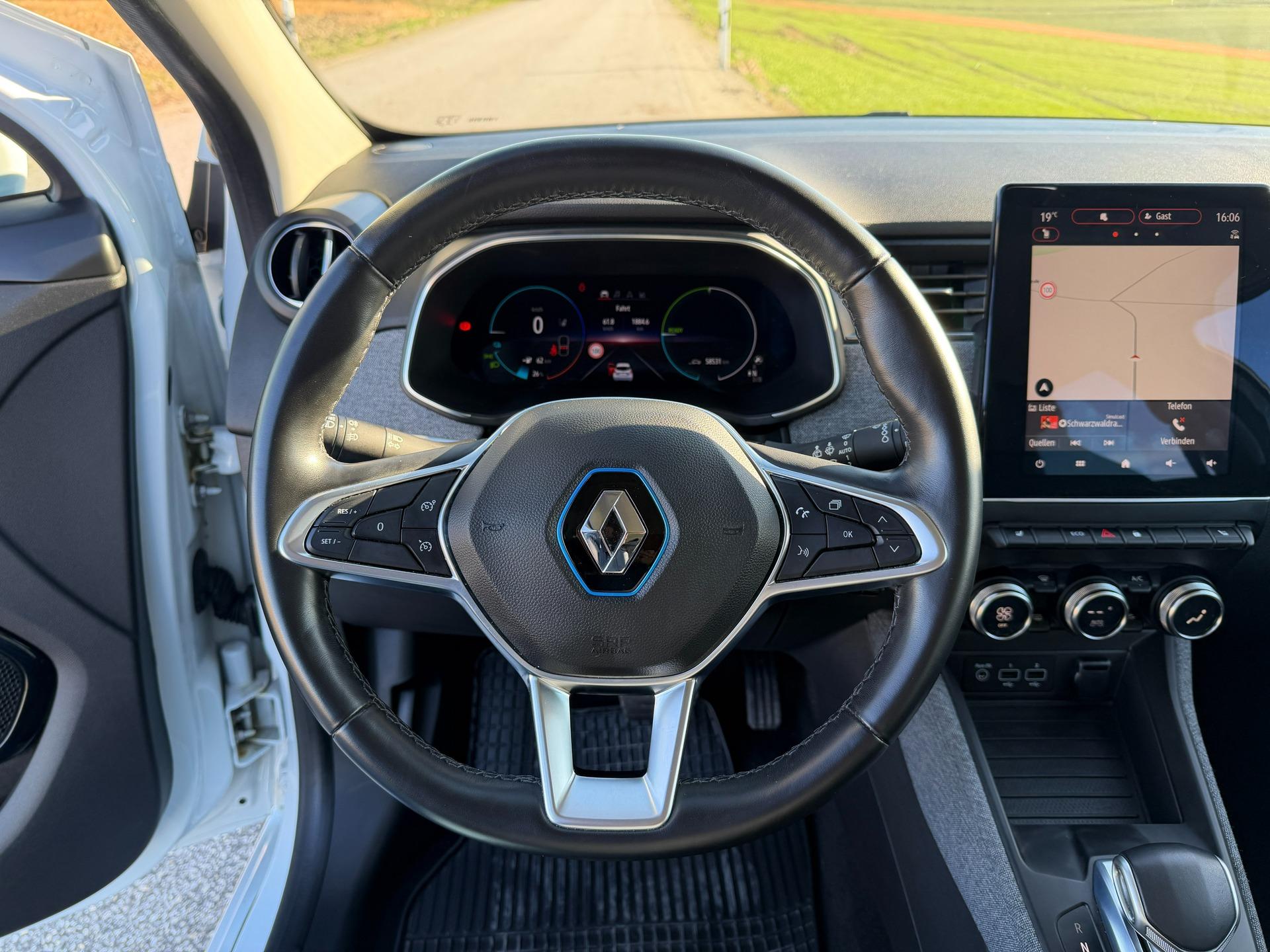 +++ Im Kundenauftrag +++Herzlich Willkommen bei der e-autowelt Markus Leitner, ihrem Gebrauchtwagenexperten für Elektrofahrzeuge. Hier finden Sie die Kompetenz und Unterstützung für einen erfolgreichen Umstieg auf das erste eigene vollelektrische Auto. Gerne können wir Ihnen dazu auch vor Ort durchgeführte Batteriestests von Aviloo (Führender Anbieter für Akkutests, wird auch von ADAC und TÜV benutzt), Wallboxen, Finanzierungen, Inzahlungnahmen (auch Verbrenner) oder Transporte anbieten. Gerne können Sie uns auf Instagram #eautowelt folgen.Unsere Autos können bei jedem Wetter besichtigt werden. Alle Fahrzeuge stehen trocken und geschützt in einer Halle. Dementsprechend bitten wir um eine schriftliche oder telefonische Terminvereinbarung (auch per WhatsApp unter der auf dem Bild angegebenen Nummer), um Ihnen die Fahrzeuge ausgiebig und in Ruhe präsentieren zu können. Hier bieten wir Ihnen eine Renault ZOE Intens R135 mit der großen 52kWh-Batterie an. Das Fahrzeug wurde in der Farbe Quarz-Weiß Metallic lackiert, kombiniert mit einer Teillederausstattung in schwarz/grau. Durch das Facelift des Fahrzeugs hat der Innenraum deutlich an Qualität gewonnen. Die Antriebsbatterie ist gemietet und kostet ab 79,- € pro Monat für 7.500 km pro Jahr bzw. bis zu 129,- € pro Monat ohne Kilometerbegrenzung. Alternativ kann die Batterie für ca. 4.000,- € erworben werden.Es wurde bei der ZOE an viele, für Elektrofahrzeuge wichtige Ausstattungsmerkmale gedacht:- Winterpaket mit Sitzheizung- Lenkradheizung- Wärmepumpe- Ladekabel Typ 2 Mode 3- CCS-SchnellladerZusätzlich verfügt das Auto noch über folgende Ausstattung:- 16" Leichtmetallräder "Elective", glanzgedreht- induktive Ladeschale- Außenspiegel in Wagenfarbe- Fernlichtassistent- Rücksitzlehne geteilt umklappbar- Spurhalte-Assistent- Spurhalte-Warner- Verkehrszeichenerkennung- el. Fensterheber vorne und hinten mit Impulsfunktion fahrerseitig- volldigitales Kombiinstrument- EASY LINK Online-Multimediasystem 9,3" mit Navigation, Android Auto, Apple Carplay und Bluetooth-Freisprecheinrichtung- Voll-LED-Scheinwerfer mit LED-Tagfahrlicht- Elektronische Parkbremse- Berganfahrhilfe- Geräuschsimulator Z.E. Voice- Keycard Handsfree- Klimaautomatik- LED-Rückleuchten mit dynamischen Blinkern- Licht- und Regensensor- Tempomat- programmierbare Klimatisierung und Heizung des Innenraums- Außenspiegel elekrisch einstell- und beheizbar- Heckscheibe und Seitenscheiben hinten getönt- Innenspiegel automatisch abblendend- Kühlergrill im Chrom-Look- LED-Nebelscheinwerfer mit Chromeinfassung- Einparkhilfe vorne und hinten sowie Rückfahrkamera- Totwinkelwarner- Auffahrwarner...Lade-und Verbrauchsdaten von ev-database.org:Durchschnittliche Reichweite 315 kmLadegeschwindigkeit 230 km/h (Durchschnittliche Ladegeschwindigkeit beim Heben des Ladestandes von 10% auf 80%, dient der Vergleichbarkeit)Ladezeit von 10 - 80% (von 32 - 252 km an CCS-Ladepunkt): ca. 56 minReale Reichweite zwischen 220 - 475 kmStadt - Winter 310 kmAutobahn - Winter 220 kmKombiniert - Winter 265 kmStadt - Sommer 475 kmAutobahn - Sommer 285 kmKombiniert - Sommer 365 kmBeispiele für reale Reichweiten in unterschiedlichen Witterungsbedingungen. Winter: 'Worst-Case' basierend auf -10°C Außentemperatur und aktiver Heizung. Sommer: 'Best-Case' basierend auf 23°C Außentemperatur und deaktivierter Klimaanlage. Auf der Autobahn wird eine konstante Geschwindigkeit von 110 km/h angenommen. Die tatsächliche Reichweite hängt von einer Vielzahl von Faktoren ab wie Geschwindigkeit, Fahrverhalten, Witterungs- und Fahrstreckenbedingungen.Alle Angaben ohne Gewähr.