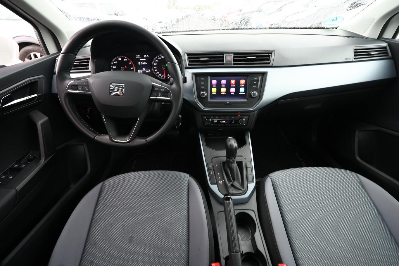 Winter-Paket (Sitz vorn rechts höhenverstellbar / Sitzheizung vorn / Außenspiegel elektr. verstell-, heiz- und anklappbar, beide), Einparkhilfe hinten, Full Link (MirrorLink, Apple CarPlay und Android Auto), Reserverad als Notrad, 2 x Schlüssel (faltbar), 3-Punkt-Automatikgurte hinten (3-fach), Audiosystem: SEAT Media-System inkl. 6,5" Touchscreen-Farbdisplay, Bluetooth-Schnittstelle, Dachreling schwarz, Fensterzierleisten schwarz, Halogen-Heckleuchten, Halogen-Scheinwerfer, Innenspiegel mit Abblendautomatik, Isofix-Vorbereitung für Kindersitze (hinten außen), Kennzeichenbeleuchtung LED, Klimaautomatik, Kopfstützen hinten (3-fach), Lenkrad (Leder) mit Multifunktion, Leseleuchten vorn, Lichtassistent (Coming Home, Leaving Home), LM-Felgen 6,5J x 16" (Design), Navigation in Verbindung mit dem Smartphone (über Apple CarPlay / Android Auto /...), Nichtraucher-Paket, Radioempfang digital (DAB), Reifen 205/60 R16, Schadstoffarm nach Abgasnorm Euro 6d-ISC-FCM (EU6AP), Schalt-/Wählhebelgriff Leder, Scheibenwischer inkl. Intervallschaltung, Scheibenwischer mit Regensensor, SEAT Connect Sicherheit & Service, Stoßfänger in Wagenfarbe, USB-Schnittstelle (Typ C), Warnanlage für Sicherheitsgurte, Elektron. Querdifferentialsperre (XDS) (Elektron. Differentialsperre (EDS)), 3. Bremsleuchte, Heckscheibenwischer, Karosserie: 5-türig, Kopfstützen vorn, Motor 1,0 Ltr. - 81 kW TSI, Otto-Partikelfilter (OPF), Radstand 2566 mm, Sitz vorn links höhenverstellbar, Anti-Blockier-System (ABS), Antriebsart: Frontantrieb, Elektron. Stabilitätskontrolle (ESC), Wegfahrsperre (elektronisch), Getriebe 7-Gang - Doppelkupplungsgetriebe DSG, Airbag Beifahrerseite abschaltbar, Airbag Fahrer-/Beifahrerseite, Fensterheber elektrisch, Kopf-Airbag-System, Rücksitzlehne geteilt/klappbar (1/3-2/3), Seitenairbag, Zentralverriegelung mit Fernbedienung, Bordcomputer, Wärmeschutzverglasung, Fahrassistenz-System: Berganfahr-Assistent (Hill-Holder), Geschwindigkeits-Regelanlage (Tempomat), Servolenkung, Nebelscheinwerfer mit Abbiegelicht integriert, Tagfahrlicht LED, Fahrassistenz-System: Umfeldbeobachtungssystem (Front assist) mit City-Notbremsfunktion, Reifendruck-Kontrollsystem