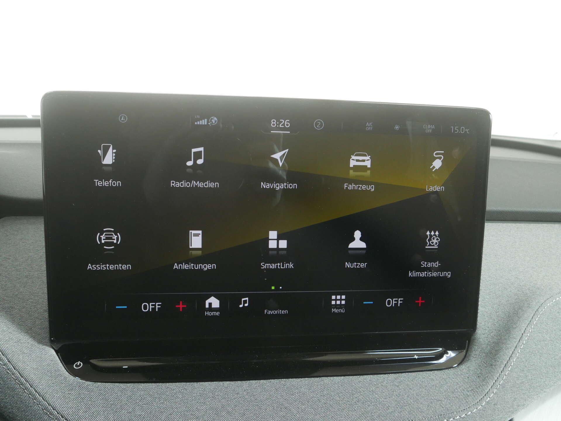 • Audio & Kommunikation: Bluetooth Freisprecheinrichtung, Digitaler Radioempfang DAB+, Infotainmentsystem mit kapazitivem 13"-Farbdisplay, Navigationssystem, SmartLink sowie Wireless SmartLink (Apple CarPlay & Android Auto)