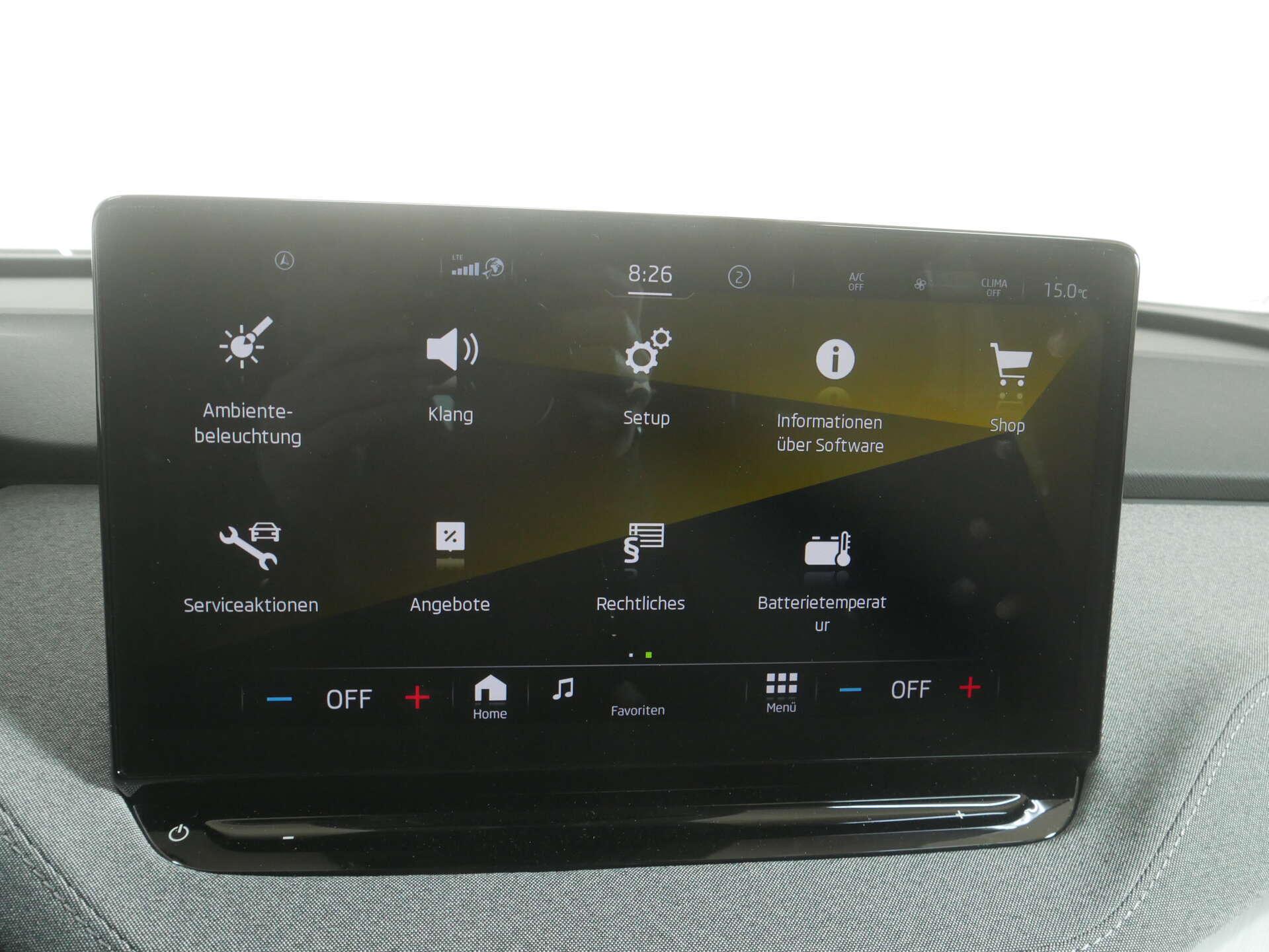 • Komfort: Care Connect inkl. iV Remote Services Basic und Infotainment Online (3 Jahre), Elektrisch einstell-, anklapp- und beheizbare Außenspiegel mit automatischer Abblendung (Fahrerseite), Elektrische Luftzusatzheizung, Geschwindigkeitsregelanlage inkl. Speed Limiter vorbereitet für Adaptiver Abstandsassistent, Heckscheibenwischer inklusive Scheibenwaschanlage, Infotainment Online, Klimaanlage Climatronic (2-Zonen), Ladekabel für AC-Ladestationen (Mode-3-Ladekabel, Typ 2, 16A), Manuelle Leuchtweitenregulierung, Parksensoren vorn und hinten mit Rangierbremsfunktion, Rückfahrkamera, Sprachsteuerung, Verkehrszeichenerkennung, Zentralverriegelung inklusive im Schlüssel integrierter Funkfernbedienungund Easy Start