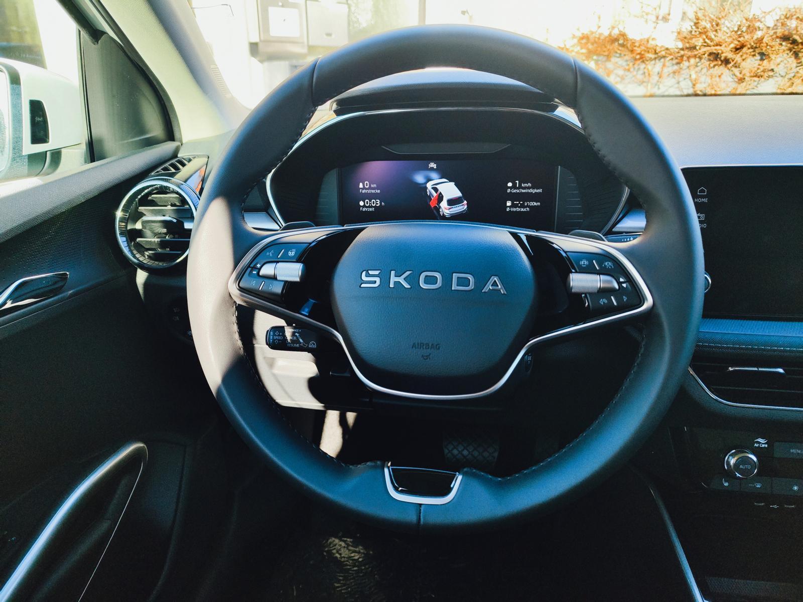Highlights:SKODA-Garantie 5 Jahre bis 100.000 KmBi-LED Scheinwerfer mit FernlichtautomatikACC AbstandstempomatAdaptive SpurführungBeheizte WindschutzscheibeEbener Ladeboden / doppelter GepäckraumbodenTot-Winkel-AssistentTempomat mit BegrenzerSitzheizungLenkradheizungEinparkhilfe vorne + hintenRückfahrkamera2-Zonen KlimaautomatikVerkehrszeichenerkennungDigitales Tacho / virtuelles Cockpit16 Zoll Leichtmetallfelgen mit SommerreifenLich & RegensensorKessy Zentralveriegelung