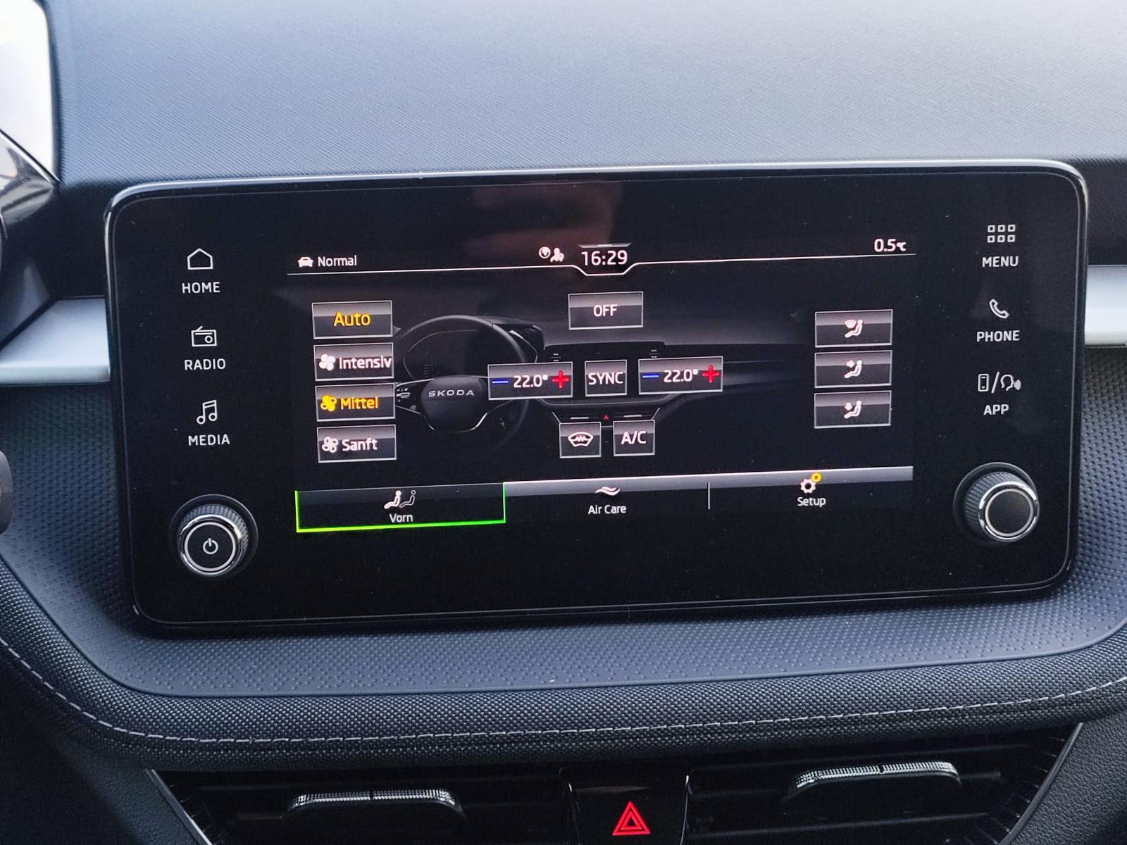 Highlights:SKODA-Garantie 5 Jahre bis 100.000 KmBi-LED Scheinwerfer mit FernlichtautomatikACC AbstandstempomatAdaptive SpurführungBeheizte WindschutzscheibeTot-Winkel-AssistentTempomat mit BegrenzerSitzheizungLenkradheizungEinparkhilfe vorne + hintenRückfahrkamera2-Zonen KlimaautomatikVerkehrszeichenerkennungDigitales Tacho / virtuelles Cockpit16 Zoll Leichtmetallfelgen mit SommerreifenLich & RegensensorKessy Zentralveriegelung