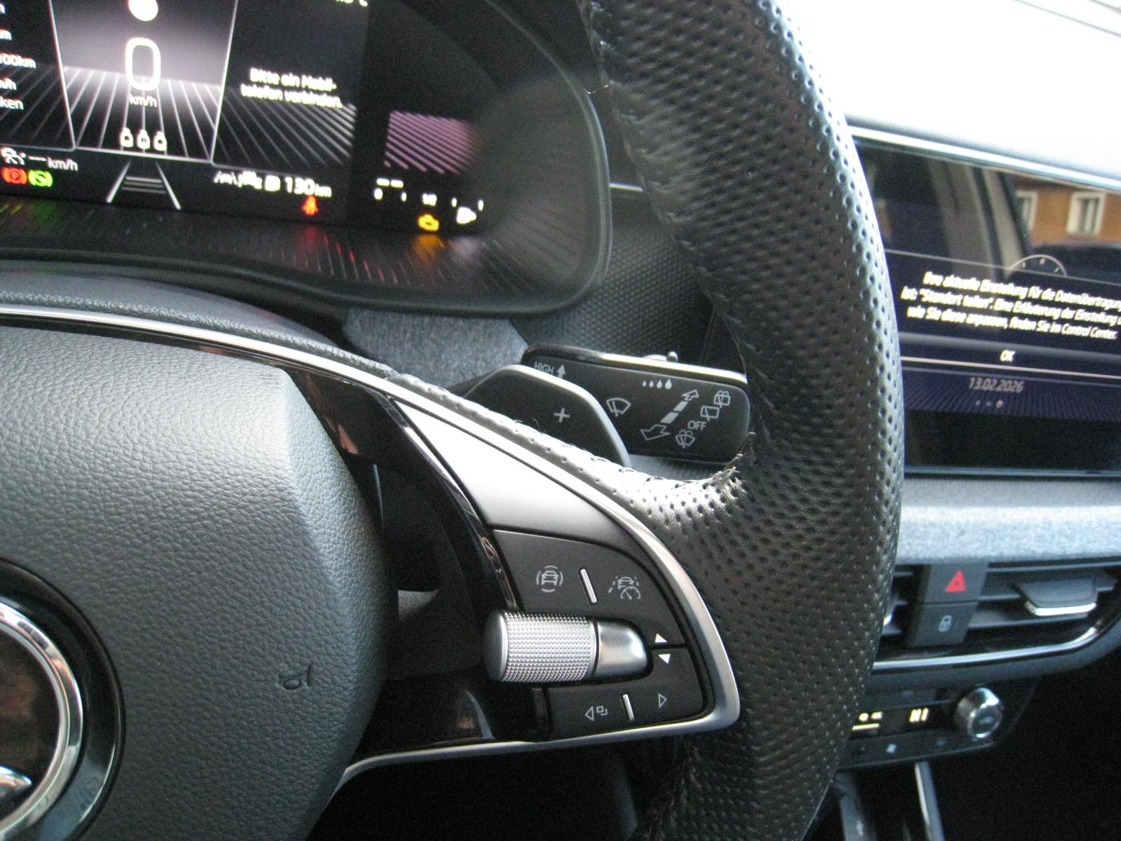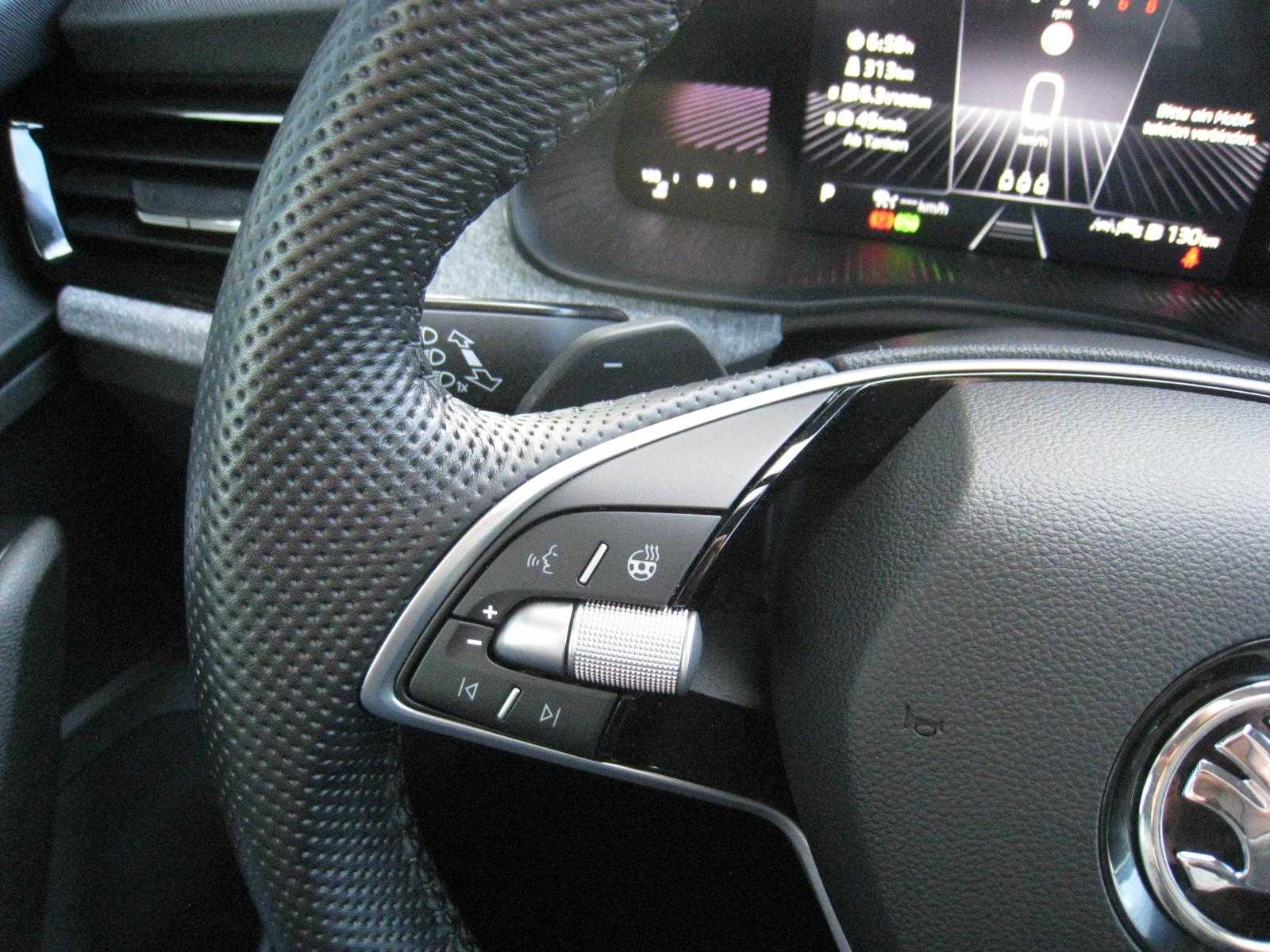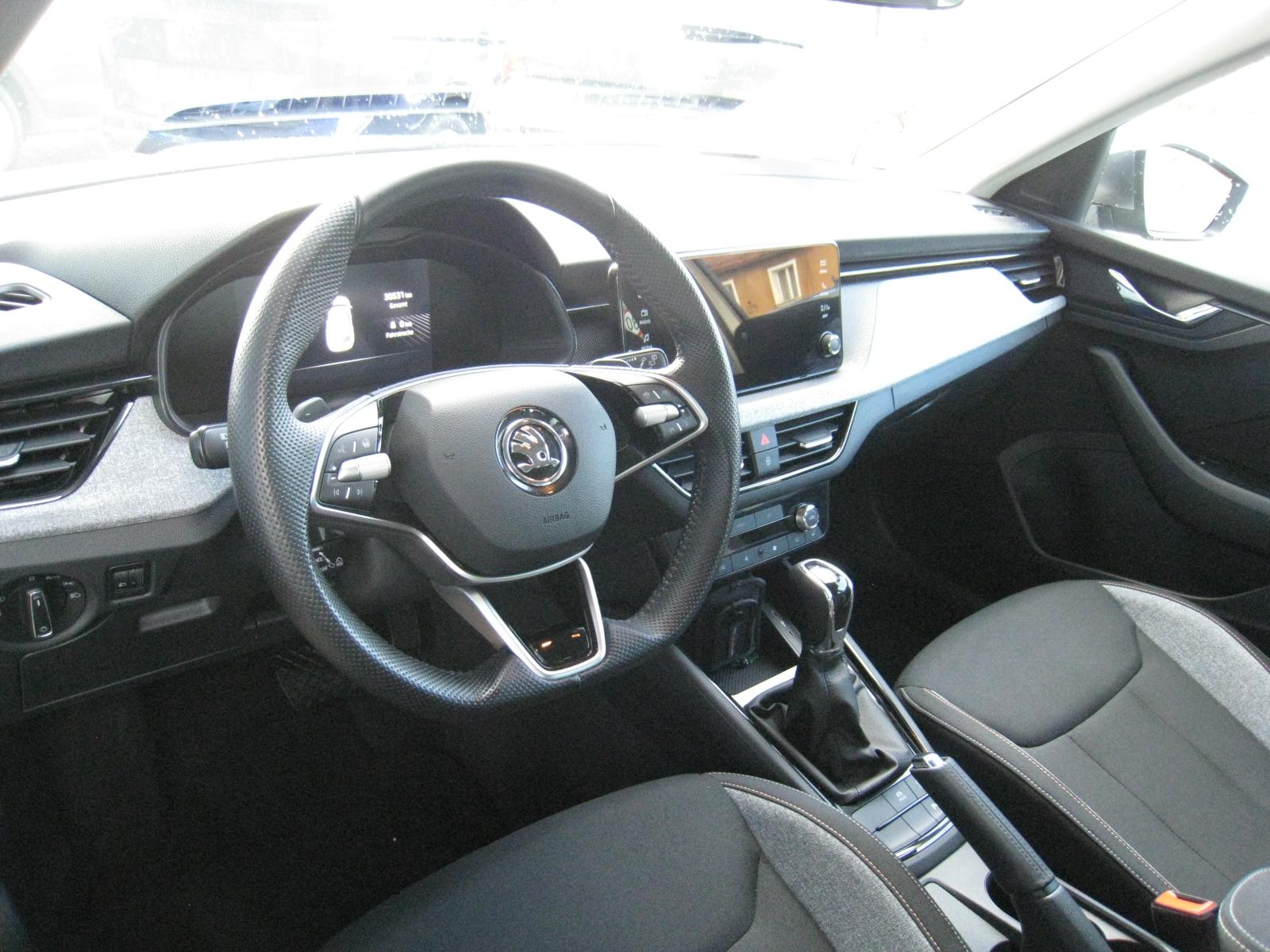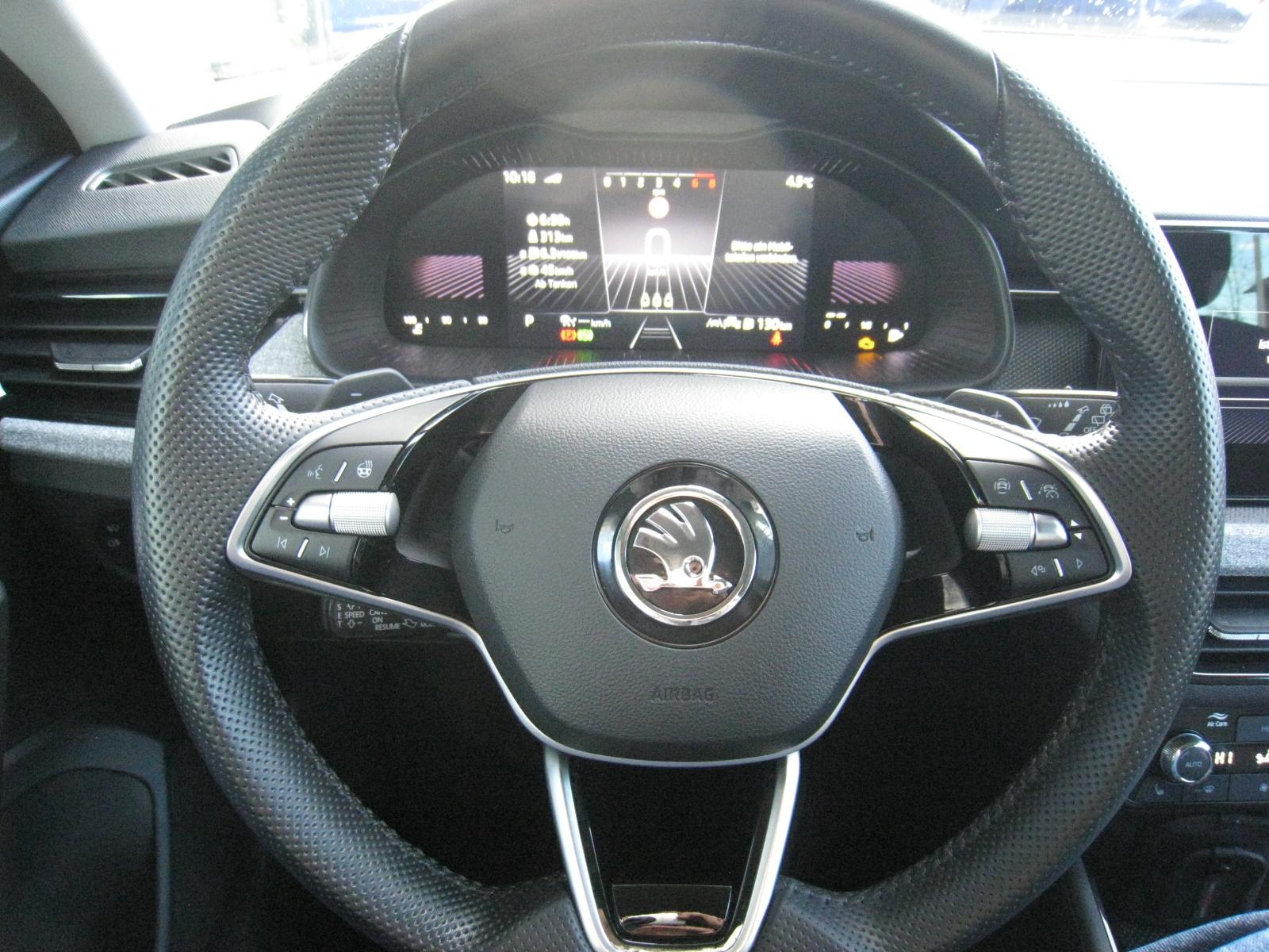 Fahrassistenz-Paket (DK)- ACC aut. Distanzregulierung – Tempomat- Speedlimiter- SPURHALTE Assistent (LANE-Assist)- TRAVEL-Assist: Stau-Assistent- Ablenkungs- und Müdigkeitserkennung- FRONT-Assist incl. City-Notbremsfunktion- Berganfahrassistent- Verkehrszeichenerkennung- eCall - privater Notruf- erweitertem Sicherheitssystem (PreCrash Basic und Front)WINTER-Paket (DK):- Sitzheizung vorne- Waschwasser-Standanzeige- Scheibenwaschdüsen beheizbar- Klimaautomatik CLIMATRONIC 2-ZonenKOMFORT-Paket (DK):- DIGITAL COCKPIT- Fahrprofilauswahl mit konv. Dämpfern- KESSY - schlüssellose ZV- PARK-DISTANZ-Kontrolle vorne und hinten- REAR View: RÜCKFAHRKAMERA- SUNSET: Scheiben ab B-Säule getöntSICHERHEITS-PAKET (DK):- Knie-Airbag Fahrerseite- Seitenairbags vorne und hinten- KopfairbagsLicht-Sicht-Paket (DK):- Licht-/Regensensor- Innenspiegel aut. Abblendbar- Tagfahrlicht mit Coming-/Leaving HomeINFOTAINMENT-Paket (DK):- 8,25 Zoll Skoda Infotainment inklusive kabellosem Apple Carplay- DAB+ digitaler Radioempfang- 8 Lautsprecher- BLUETOOTHWired & Wireless App Connect (Navi mit kompatiblem Smartphone möglich)