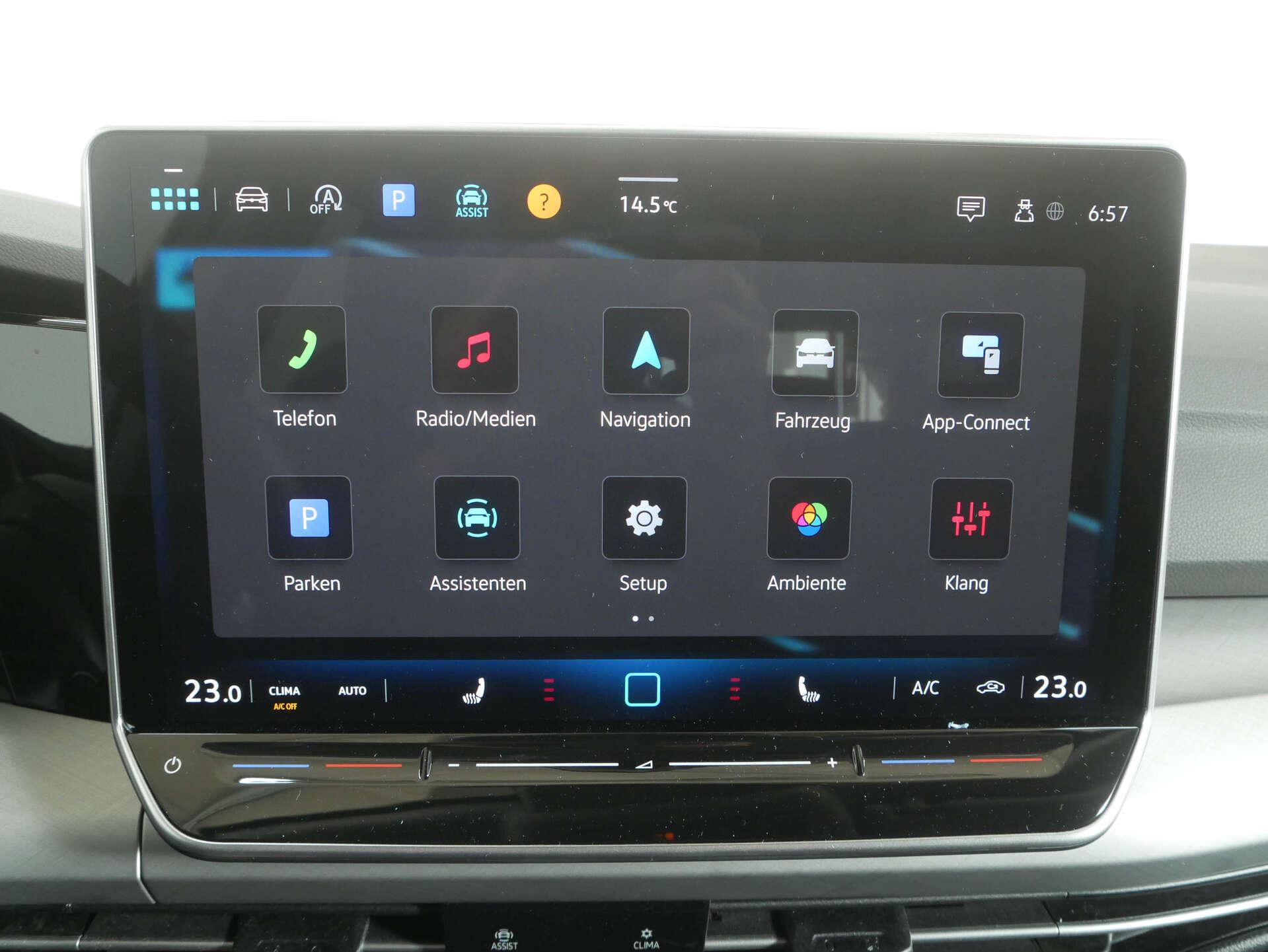 • Interieur: 12-V-Steckdose im Gepäckraum, 2 LED-Leseleuchten vorn und 2 hinten, 2 USB-C-Schnittstellen vorn, 2 USB-C-Ladebuchsen an der Mittelkonsolehinten Ladeleistung bis zu 45 W, 3 Kopfstützen hinten, Ambientebeleuchtung 10-farbig, Bordwerkzeug, Chrom-Applikationen an Spiegeleinstell- und Fensterheberschaltern, Chromleisten an den Auströmern, Dekoreinlagen "Nature Cross Brushed" für Instrumententafel und Türverkleidungen vorn, Digital Cockpit Pro, mehrfarbig, verschiedene Info-Profile wählbar, Infotainment-System mit 32-cm-Display (12,9 Zoll), Komfortsitze vorn, Lendenwirbelstützen vorn, Make-up-Spiegel beleuchtet in den Sonnenblenden, Mittelarmlehne vorn höhen- und längseinstellbar, Multifunktionslenkrad in Leder, beheizbar, Rücksitzbank ungeteilt, Lehne asymmetrisch geteilt umklappbar, mit Mittelarmlehne, Sicherheitsgurte hinten außen mit Gurtstraffer, Telefonschnittstelle "Comfort" mit induktiver Ladefunktion, Türgriffmulden beleuchtet, Vordersitze mit Höheneinstellung
