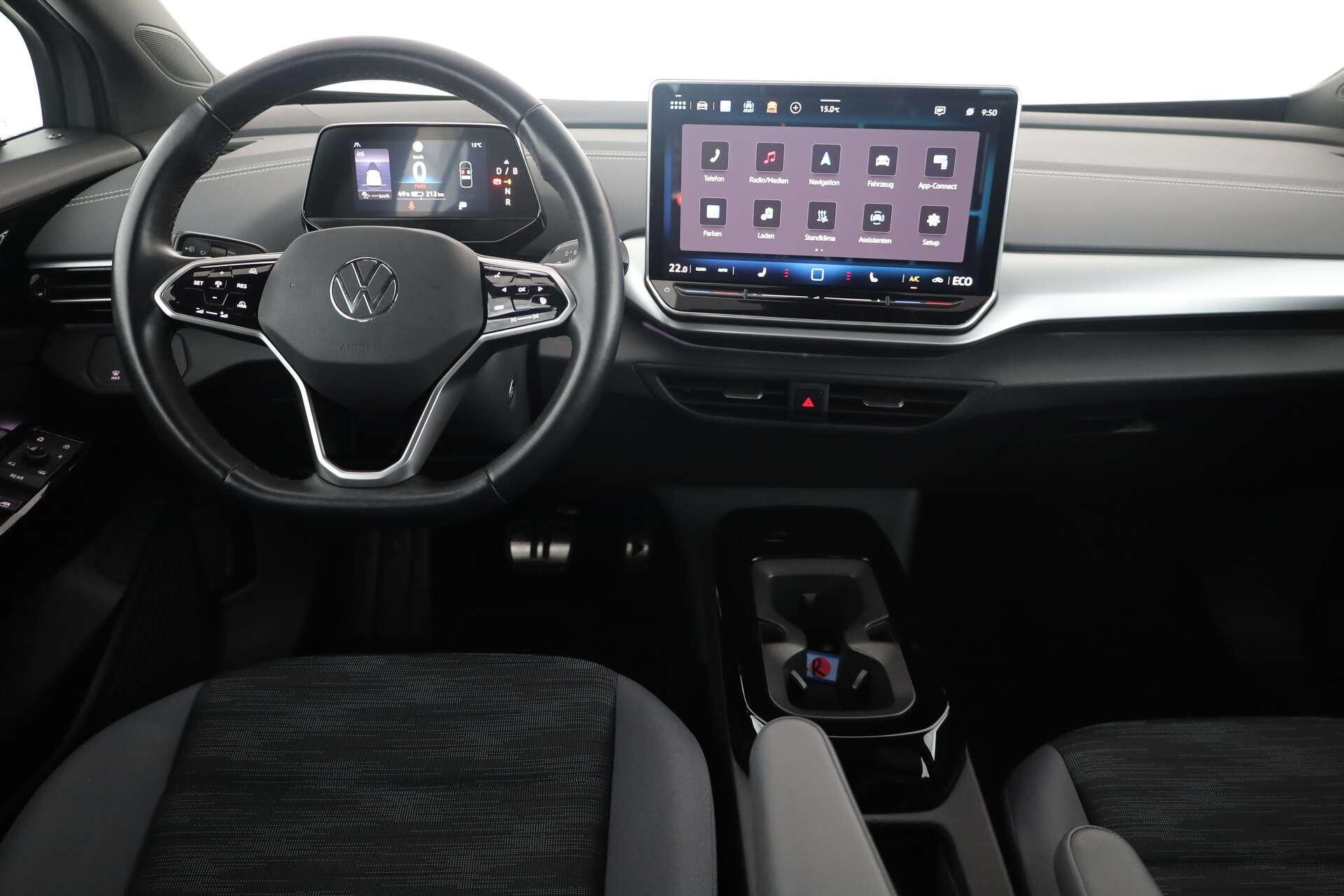 • Interieur: 2 USB-C-Schnittstellen vorn, 2 USB-C-Ladebuchsen an der Mittelkonsolehinten Ladeleistung bis zu 45 W, Ambientebeleuchtung 10-farbig, inkl. ID. Light, Armlehne für Vordersitze, Einfassung des Infotainment-Displays undder zentralen Bedienelemente in Schwarz, Fahrersitz mit Höheneinstellung, Innenspiegel automatisch abblendend, Make-up-Spiegel beleuchtet in den Sonnenblenden, Multifunktionslenkrad beheizbar, mit Touch-Bedienung, Pedale in Edelstahl, im "Play/Pause"-Design, Steckdose 12V im Koffer-/Laderaum, Türverkleidung Kunstleder
