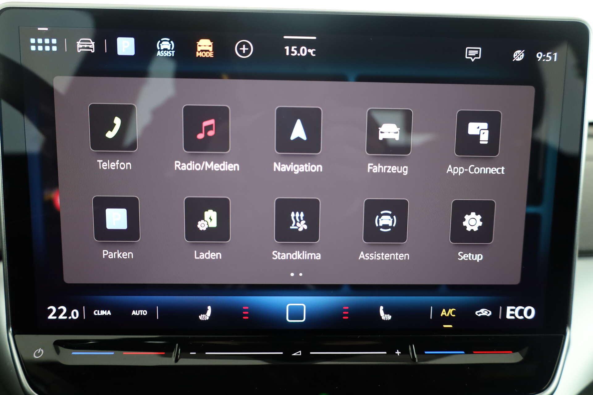 • Komfort: 11 kW AC-Ladeleistung (Wechselstrom), Ablenkungs- und Müdigkeitserkennung, CCS-Ladedose, Einparkhilfe - Warnsignale bei Hindernissen im Front- und Heckbereich, Fahrprofilauswahl, Frontscheibe in Verbundsicherheitsglas, drahtlos beheizbar und infrarot-reflektierend, geräuschdämmend, Geschwindigkeitsbegrenzer mit vorausschauender Regelung, Hochvolt-Batterie 82 kWh (brutto), Klimaanlage "Air Care Climatronic" mit Aktiv-Kombifilter, Standklimatisierung und 2-Zonen-Temperaturregelung, Ladekabel Mode 3 Typ 2, 32 A, Maximale DC-Ladeleistung (Gleichstrom) abhängig von der Antriebsbatterie, Netzladekabel für Haushalts-Steckdose, Rücksitzbank ungeteilt, Lehne asymmetrisch geteilt umklappbar, Schlüsselloses Startsystem "Keyless Start" ohne Safe-Sicherung, Sprachbedienung, Verkehrszeichenerkennung, Vorbereitet für We Connect (Plus) oder VW Connect (Plus) Online-Update- Fähigkeit (außer für Sonderumbauten), Vordersitze beheizbar